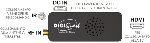 Digiquest X2O, Terrestre, Full HD, DVB-T2, Nero, Digitale, Dolby Digital, Dolby Digital Plus
