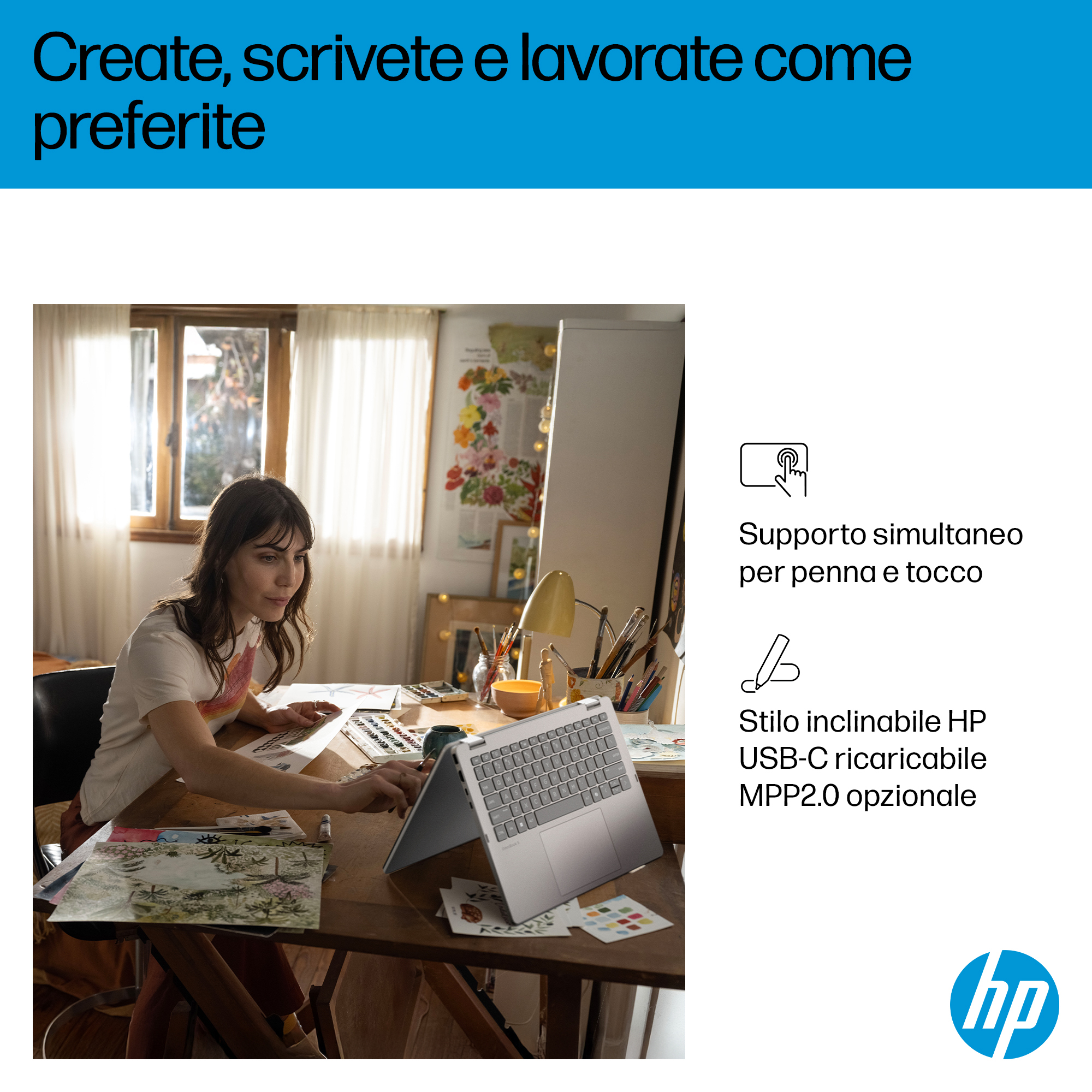 • Scegli la posizione perfetta per lavorare e creare con questo versatile design con rotazione a 360° e la penna ricaricabile HP.