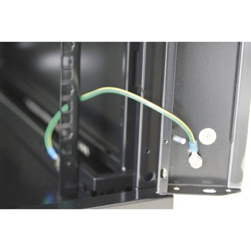 - Due coppie di montanti 19" da 1.5 mm, regolabili in profondità (massima profondità utile 350 mm, 60 mm spazio disponibile tra montante e porta con montante completamente avanzato);
