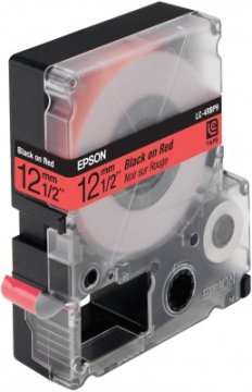 Epson Nastro Rosso per testo Nero 12/9. Colore del prodotto: Nero su rosso, Tecnologia di stampa: Trasferimento termico, Paese di origine: Cina. Lunghezza nastro: 9 m, Quantità per pacco: 1 pezzo(i), Larghezza imballo: 25 mm. Ampiezza del pallet: 80 cm, Lunghezza del pallet: 120 cm, Altezza del pallet: 94 cm. Dimensione nastro: 1,2 cm