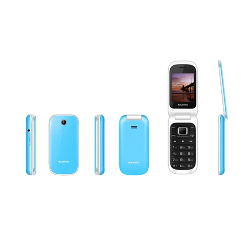 New Majestic TLF Lucky 48 Flip UMTS. Fattore di forma: A conchiglia. Capacità della scheda SIM: SIM singola. Dimensioni diagonale schermo: 6,1 cm (2.4"). Risoluzione fotocamera posteriore (numerico): 1,3 MP. Bluetooth. Radio FM. Tecnologia batteria: Litio, Capacità della batteria: 820 mAh. Peso: 73 g. Colore del prodotto: Blu