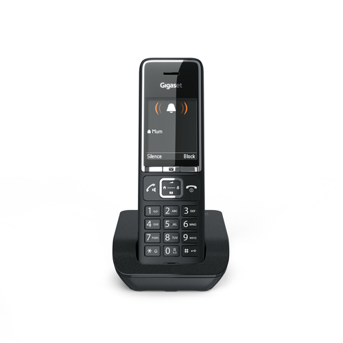 Se hai grandi aspettative, Gigaset COMFORT 550 è proprio quello che fa per te. Questo telefono cordless è unico, grazie alle sue opzioni di personalizzazione. Puoi scegliere tra diversi sfondi del display, lo sfondo scuro preimpostato, che si abbina al design moderno del COMFORT 550, oppure uno sfondo bianco ad alto contrasto. Per lo screensaver, puoi scegliere tra un orologio analogico o digitale. Puoi anche personalizzare il suono scegliendo tra le tante suonerie e puoi scegliere la giusta gamma di frequenza tra due profili acustici (alto o basso) per un'esperienza di ascolto ottimale. E per distinguere i contatti al primo squillo, puoi anche assegnare suonerie diverse ai chiamanti importanti.