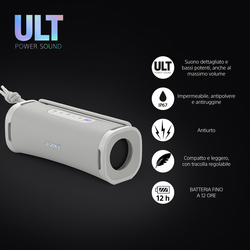 Sony ULT FIELD 1 - Speaker portatile wireless Bluetooth con ULT POWER SOUND, bassi potenti, IP67, impermeabile, antipolvere, antiurto, batteria da 12 ore, qualità chiamata chiara, anche da esterno, vi