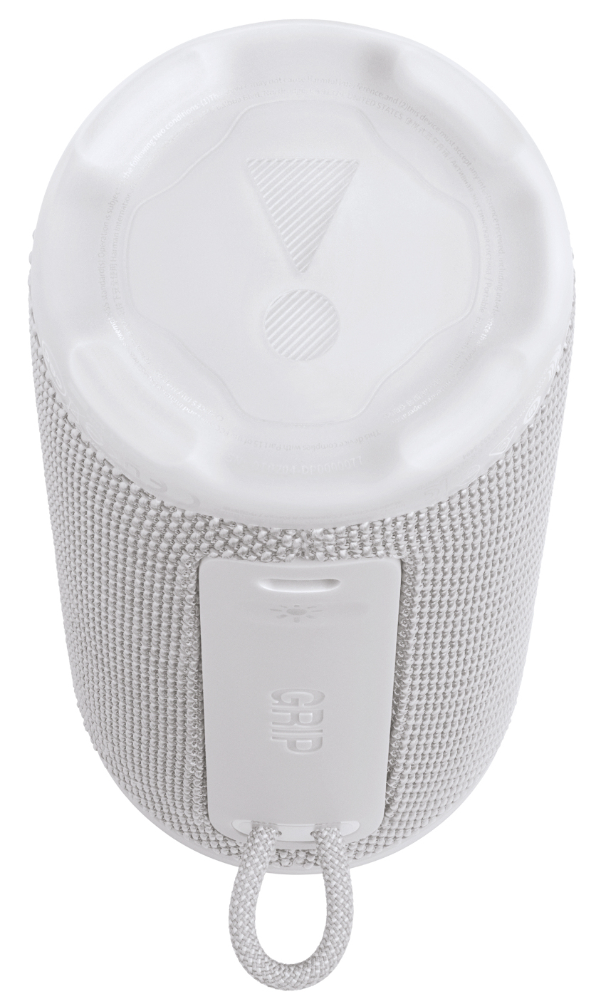 JBL Grip. Potenza in uscita (RMS): 16 W, Range di frequenza: 70 - 20000 Hz, Rapporto segnale/rumore (SNR): 80 dB. Tecnologia di connessione: Wireless, Range di frequenza: 2,4 - 2,483 GHz, Profili Bluetooth: A2DP, AVRCP. Tipo di prodotto: Altoparlante portatile mono, Colore del prodotto: Bianco, Controllo del volume: Pulsanti. Utilizzo raccomandato: Cellulare/Smartphone. Tipo batteria: Batteria integrata, Potenza di ricarica richiesta (min): 7,5 W, Potenza di ricarica richiesta (max): 15 W