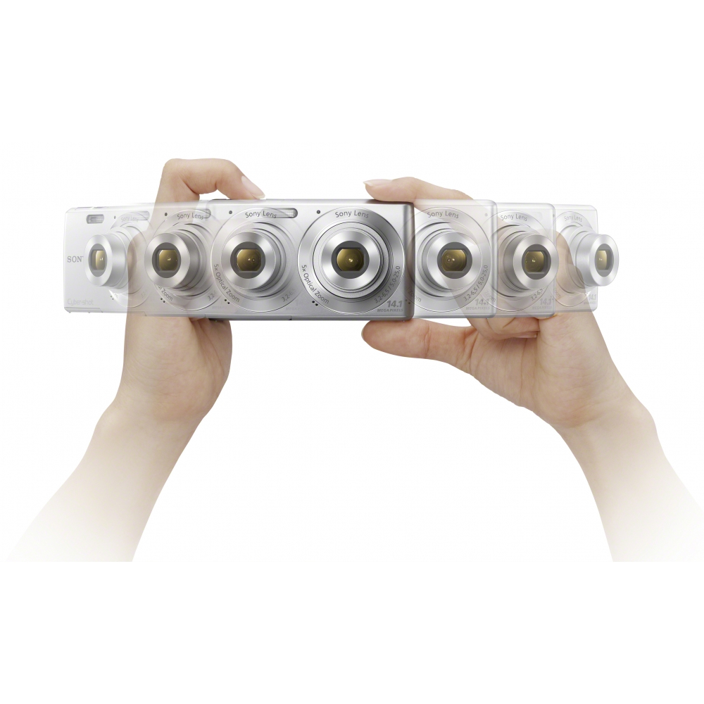 Sony Cyber-shot W620 Fotocamera digitale compatta. Tipologia fotocamera: Fotocamera compatta, Megapixel: 14,1 MP, Dimensione del sensore di immagine: 1/2.3", Tipo sensore: CCD, Risoluzione massima immagine: 4320 x 3240 Pixel. Sensibilità ISO (max): 3200. Zoom ottico: 5x, Zoom digitale: 10x, Lunghezza focale: 5 - 25 mm. Velocità massima dell'otturatore della fotocamera: 1/2000 s. Tipologia HD: HD, Risoluzione massima video: 1280 x 720 Pixel. Dimensioni schermo: 6,86 cm (2.7"). Peso: 100 g. Colore del prodotto: Argento