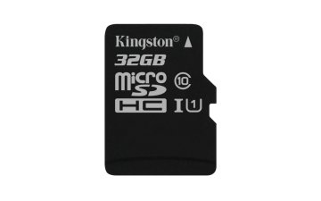 Kingston Technology Canvas Select. Capacità: 32 GB, Tipo flash card: MicroSDHC, Classe di memoria flash: Classe 10, Tipo di RAM: UHS-I, Velocità di lettura: 80 MB/s, Velocità di scrittura: 10 MB/s, Classe di velocità UHS: Class 1 (U1). Funzioni di protezione: Resistente agli urti, A prova di temperatura, Resistente alle vibrazioni, Resistente all’acqua, Colore del prodotto: Nero