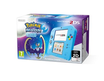Nintendo 2DS + Pokémon Moon. Piattaforma: Nintendo 2DS. Colore del prodotto: Blu, Tecnologia di controllo del gioco: Analogico/Digitale, Tasti funzione per il controllo del gioco: D-pad, Casa, Potenza, Selezione, Inizio. Tipologia display: LCD, Dimensioni schermo: 8,97 cm (3.53"), Risoluzione del display: 400 x 240 Pixel. Capacità memoria integrata: 1 GB, Tipi schede di memoria: MicroSD (TransFlash), Scheda di memoria inclusa: 4 GB. Banda di frequenza: 2.4 GHz, Standard Wi-Fi: 802.11b,802.11g