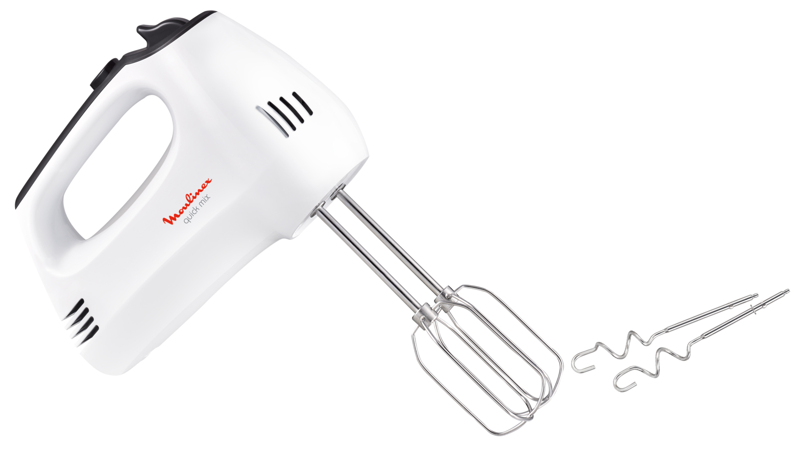 Moulinex HM3101 Sbattitore Quick Mix. Tipo: Sbattitore manuale, Colore del prodotto: Bianco, Funzioni mixer: Miscelatura. Materiale lama: Metallo. Potenza: 300 W. Larghezza: 147 mm, Profondità: 211 mm, Altezza: 84 mm. Larghezza imballo: 106 mm, Profondità imballo: 220 mm, Altezza imballo: 200 mm