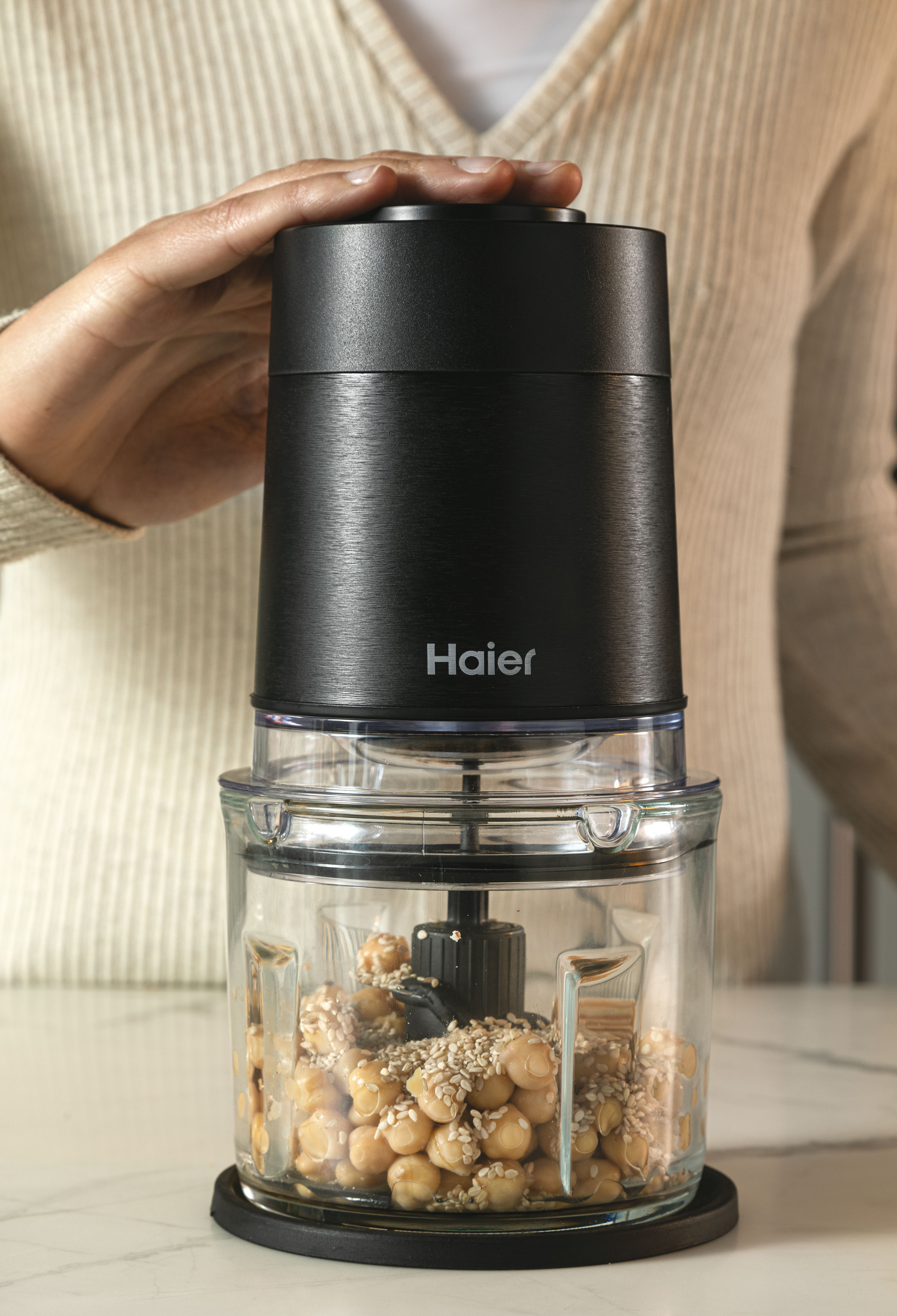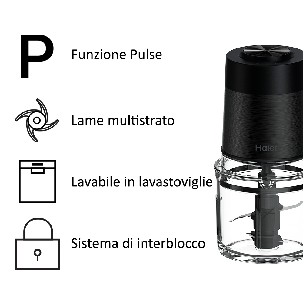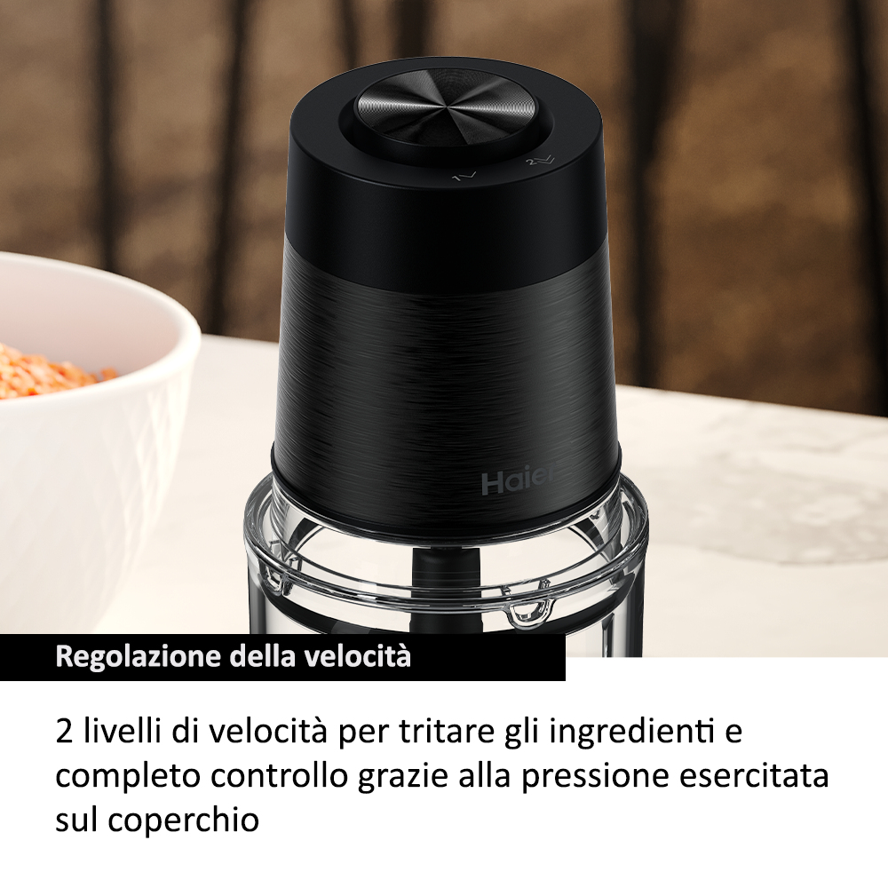 Haier Tritatutto I-Master Serie 5 Nero, 4 lame in acciaio inox, 2 livelli di velocità, Ciotola in vetro 0,5 L