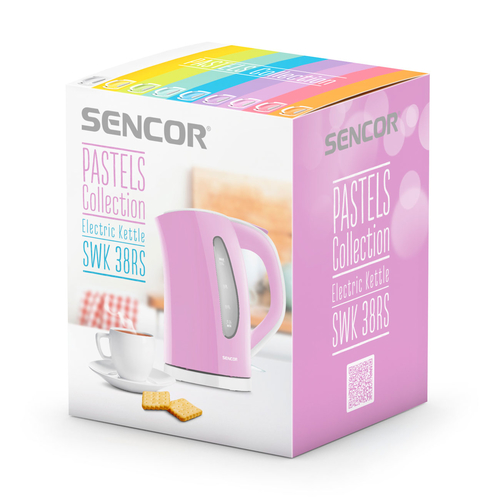 SWK38RS - SENCOR BOLLITORE SWK38RS ROSA Caratteristiche principali SWK38RS Filtro extra fine impurità e anticalcare rimovibile e lavabile Volume 1,5 l Indicatore del livello dell'acqua sui due lati con retroilluminazione blu Beccuccio antigoccia appositamente progettato Conservazione del cavo di alimentazione nella base Base in acciaio inox con spirale di riscaldamento coperta Coperchio facile da aprire con un pulsante nella parte superiore del manico Blocco di sicurezza del coperchio in posizione chiusa Triplo sistema di sicurezza Connettore centrale 360° Interruttore on/off con retroilluminazione Adatto anche per utenti con problemi di udito Potenza assorbita: 2.000-2.400 W Peso senza la base: 639 g Tensione e frequenza: 220-240 V, 50 Hz.
