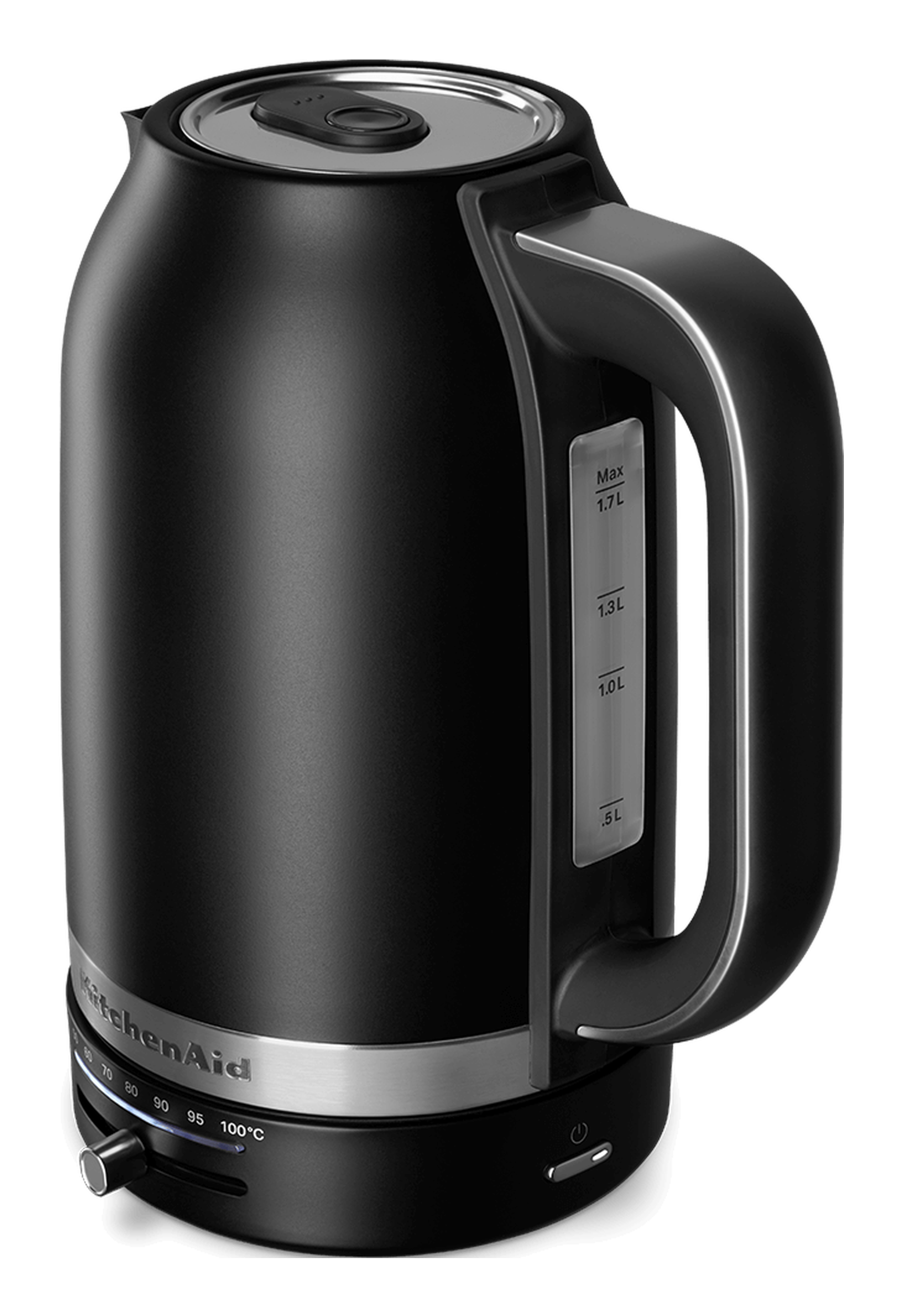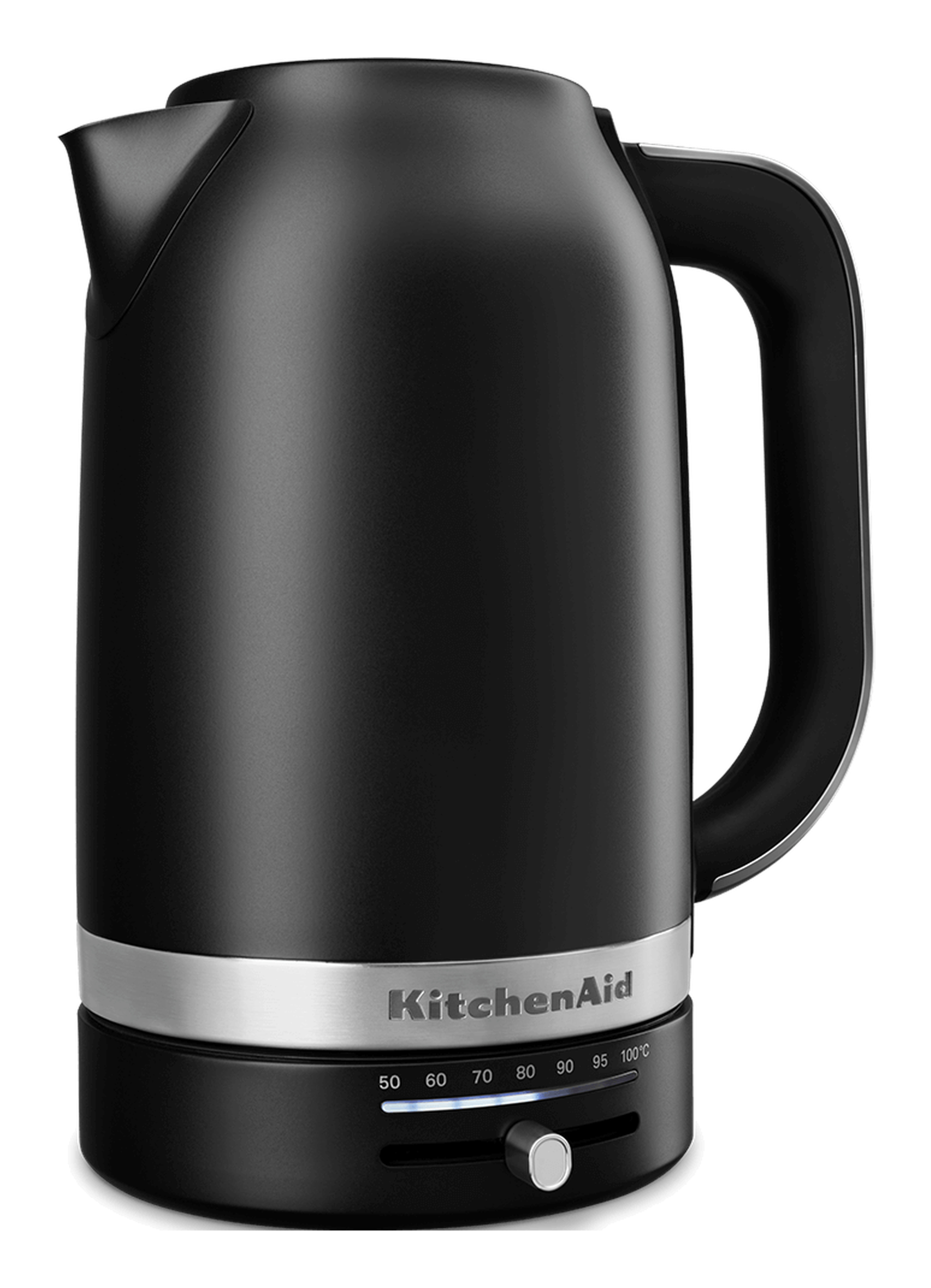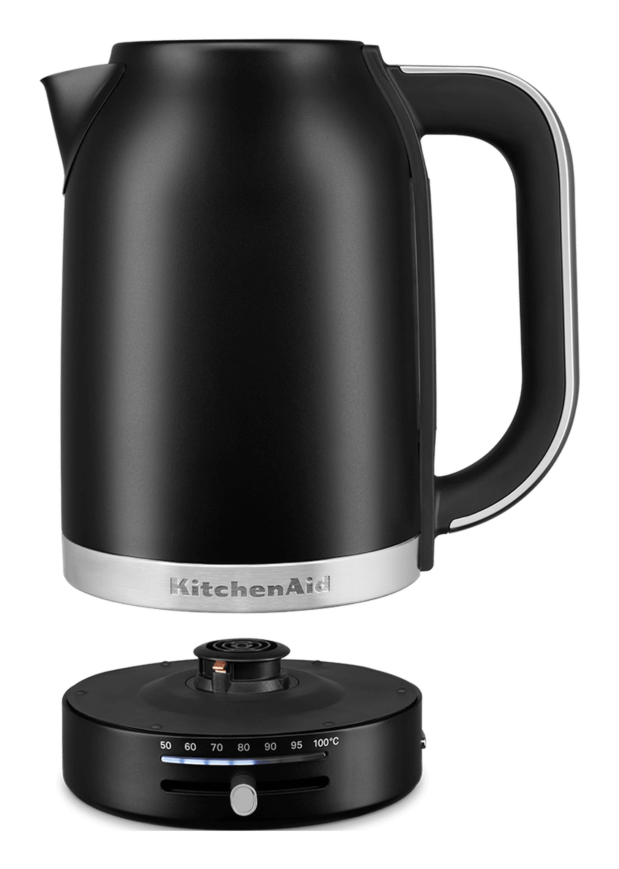 KitchenAid 5KEK1701EBM. Capacità tanica acqua: 1,7 L. Potenza: 2400 W. Colore del prodotto: Nero, Materiale della scocca: Plastica, Acciaio inox, Termostato regolabile. Senza filo. Filtro