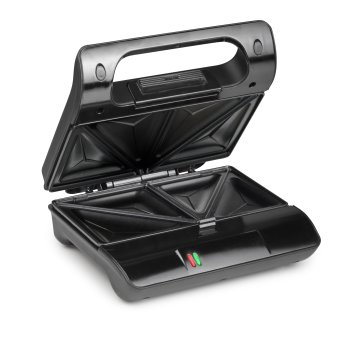 Sandwich Maker per preparare contemporaneamente due toast. Dotato di termostato automatico, spia luminosa e superficie antiaderente, per una facile pulizia. Con sistema di bloccaggio e sistema avvolgicavo.