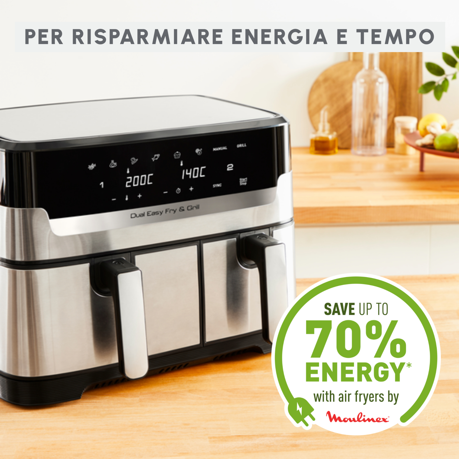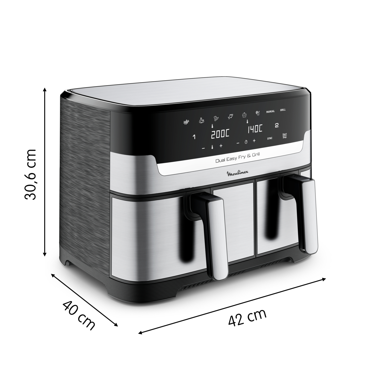 Moulinex Dual Easy Fry EZ905D20 friggitrice Doppia 8,3 L Indipendente 2450 W Friggitrice ad aria calda Nero, Acciaio inox