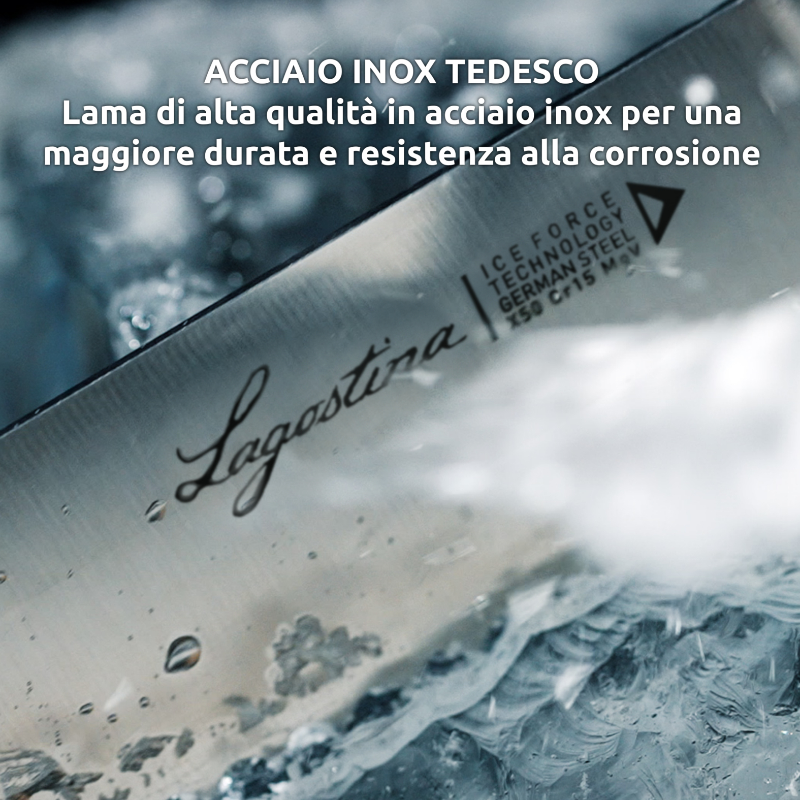 Lagostina Ice Force Coltello Spelucchino da 9 cm, Coltello da Cucina, Lama in Acciaio Inox Tedesco, Prestazioni di Taglio Durature e Lama Sempre Affilata