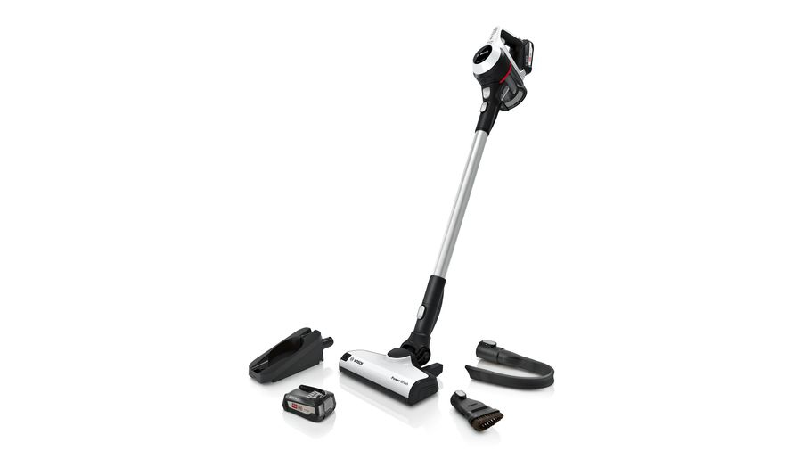 Bosch Serie 6 BCS61BAT2. Tipo di prodotto: Aspirapolvere a bastone 2 in 1, Tipo di contenitore della polvere: Senza sacchetto, Colore del prodotto: Nero, Bianco. Tipo di pulizia: Secco. Alimentazione: Batteria, Tecnologia batteria: Ioni di Litio, Voltaggio della batteria: 18 V. Larghezza: 200 mm, Profondità: 265 mm, Altezza: 1220 mm