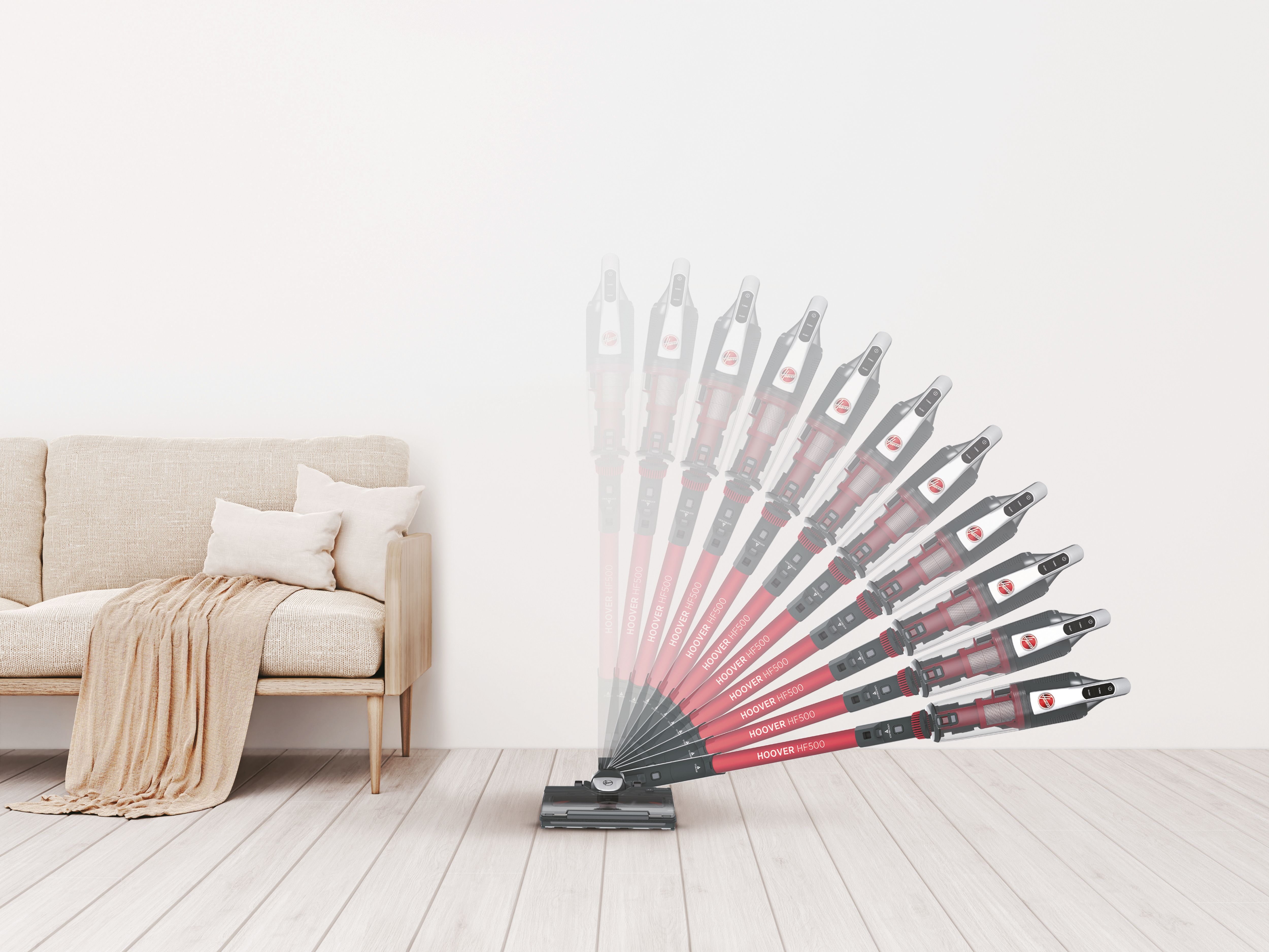 Piccoli spazi? Nessun problema. Quando è in modalità compatta, la scopa ricaricabile HF500 è alta solo 69 cm, così da poterla riporre anche negli spazi più piccoli come armadi della cucina o del soggiorno.