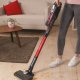 Le due luci LED posizionate sul manico permettono di tenere sempre sotto controllo lo stato della batteria e lo stato di manutenzione. La parte di sinistra mostra costantemente lo stato della batteria sia durante l'utilizzo sia durante la carica della scopa elettrica. La parte di destra mostra invece quando è necessaria la manutenzione del pre-filtro.