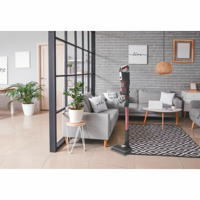 La nuova scopa ricaricabile Hoover HF500, compatta e manovrabile, è progettata per fornire prestazioni eccellenti per un'efficace raccolta di polvere e detriti su tutti i tipi di pavimenti. La spazzola motorizzata anti-groviglio previene l'aggrovigliamento dei capelli e peli sul rullo della spazzola durante la pulizia. Quando è riposta, misura solo 69 cm di altezza, pratica per riporla dove vuoi.