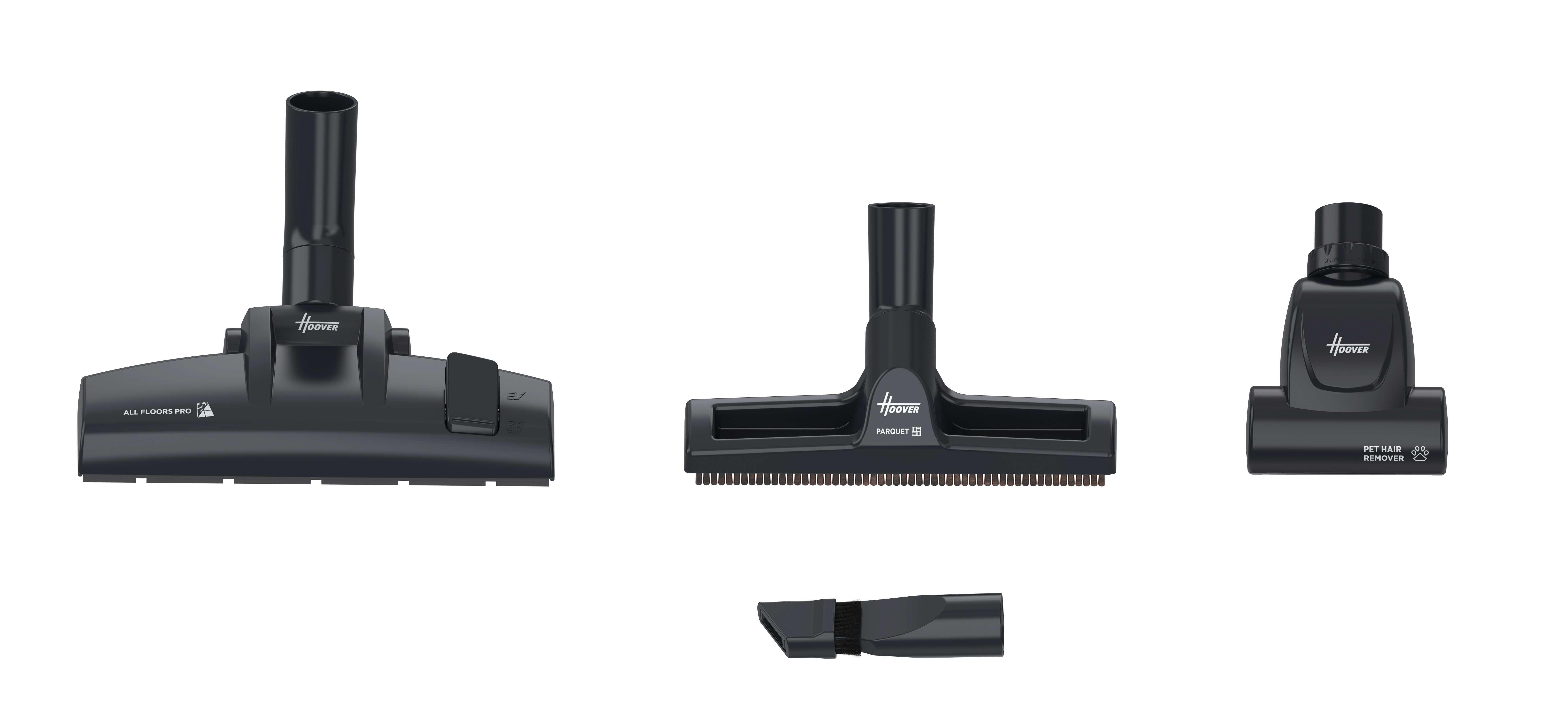 Hoover HP120PET 011. Massima potenza in entrata: 700 W. Tipo: A cilindro, Tipo di pulizia: Secco, Tipo di contenitore della polvere: Senza sacchetto, Capacità del contenitore: 2 L. Sistema di filtraggio dell'aspirapolvere: EPA, Metodo di separazione dello sporco: Ciclonico, Emissione acustica: 78 dB. Colore del prodotto: Grigio