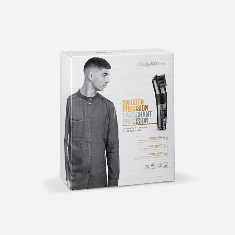 BaByliss Carbon Titanium. Colore del prodotto: Nero, Lunghezza minima del taglio: 0,5 mm, Lunghezza massima del taglio: 2,5 cm. Alimentazione: CA/Batteria, Tempo di funzionamento: 60 min, Tipo batteria: Batteria integrata