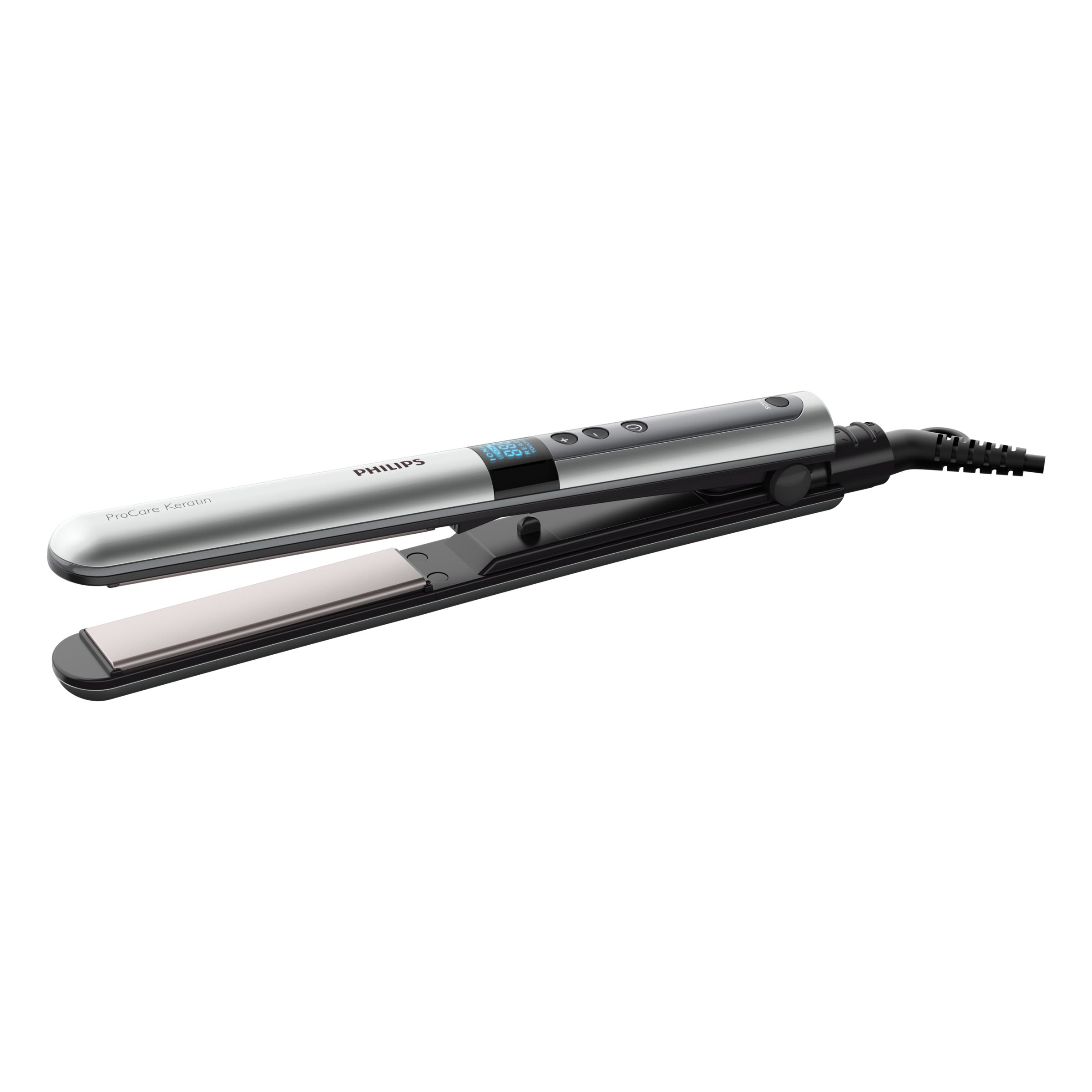 Massima cura per i capelli. Grazie alla tecnologia avanzata a base di cheratina, mette in risalto e protegge la naturale lucentezza dei tuoi capelli mentre crei la tua piega.
