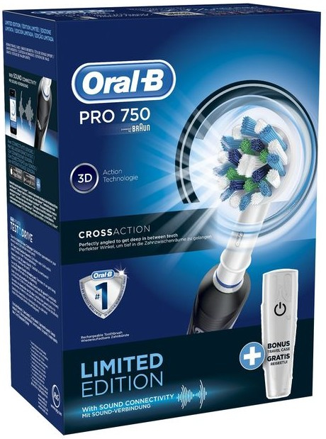 Oral-B PRO 750 + Travel Case Spazzolino rotante-oscillante Nero, Bianco