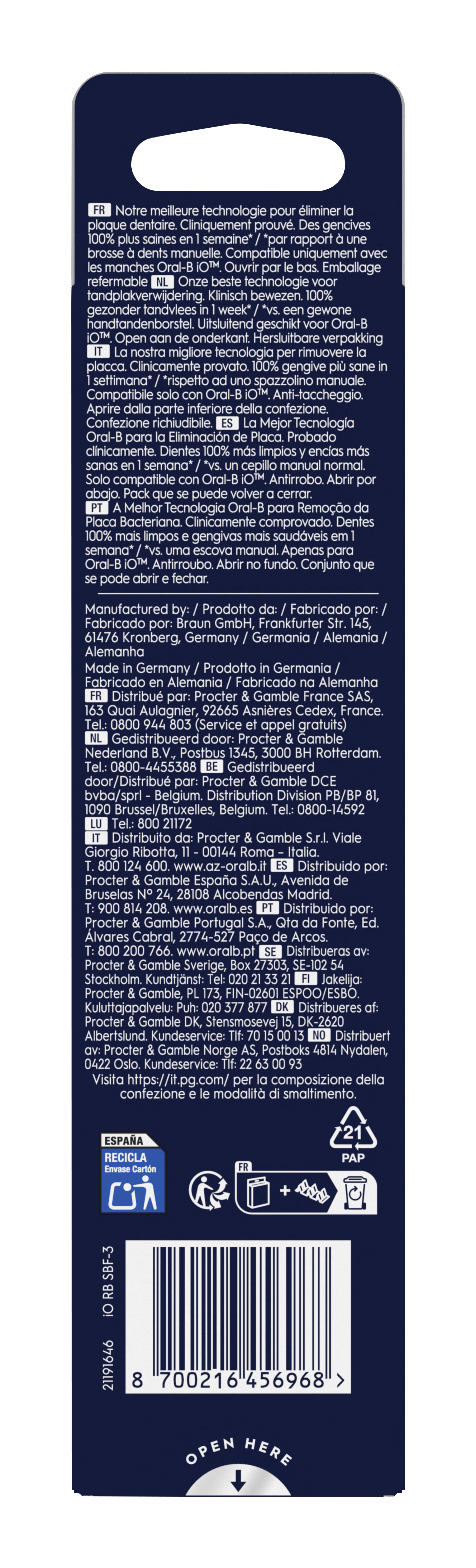 Oral-B Testine di Ricambio iO Series Gentle Care Black, testine rotonde di ricambio originali, setole angolate per una rimozione più profonda della placca, testina più morbida, adatte a gengive sensibili, 3. Numero di testine incluse: 3 pz, Colore del prodotto: Nero, Paese di origine: Germania. Tipo di imballo: Scatola da appendere