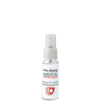 Innoliving Medical Defender è un Presidio Medico Chirurgico Reg. n°18896 del Ministero della Salute. Flacone tascabile no gas contenente disinfettante con doppio principio attivo.