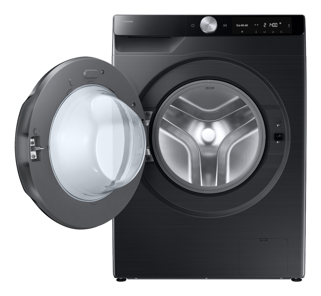 Samsung WD90DG6G94BB/U3. Tipo di carica: Caricamento frontale, Posizionamento dell'apparecchio: Libera installazione, Colore del prodotto: Nero. Capacità di asciugatura: 5 kg, Velocità di centrifuga massima: 1400 Giri/min, Classe di efficienza della centrifuga: B. Classe di efficienza energetica (lavaggio): A, Classe di efficienza energetica( lavaggio e asciugatura): E, Consumo di acqua (lavaggio): 50 L. Tecnologie Samsung (cura dei vestiti): Controllo AI, AI Wash, Air Wash, ecobubble™. Profondità: 480 mm, Larghezza: 600 mm, Altezza: 850 mm