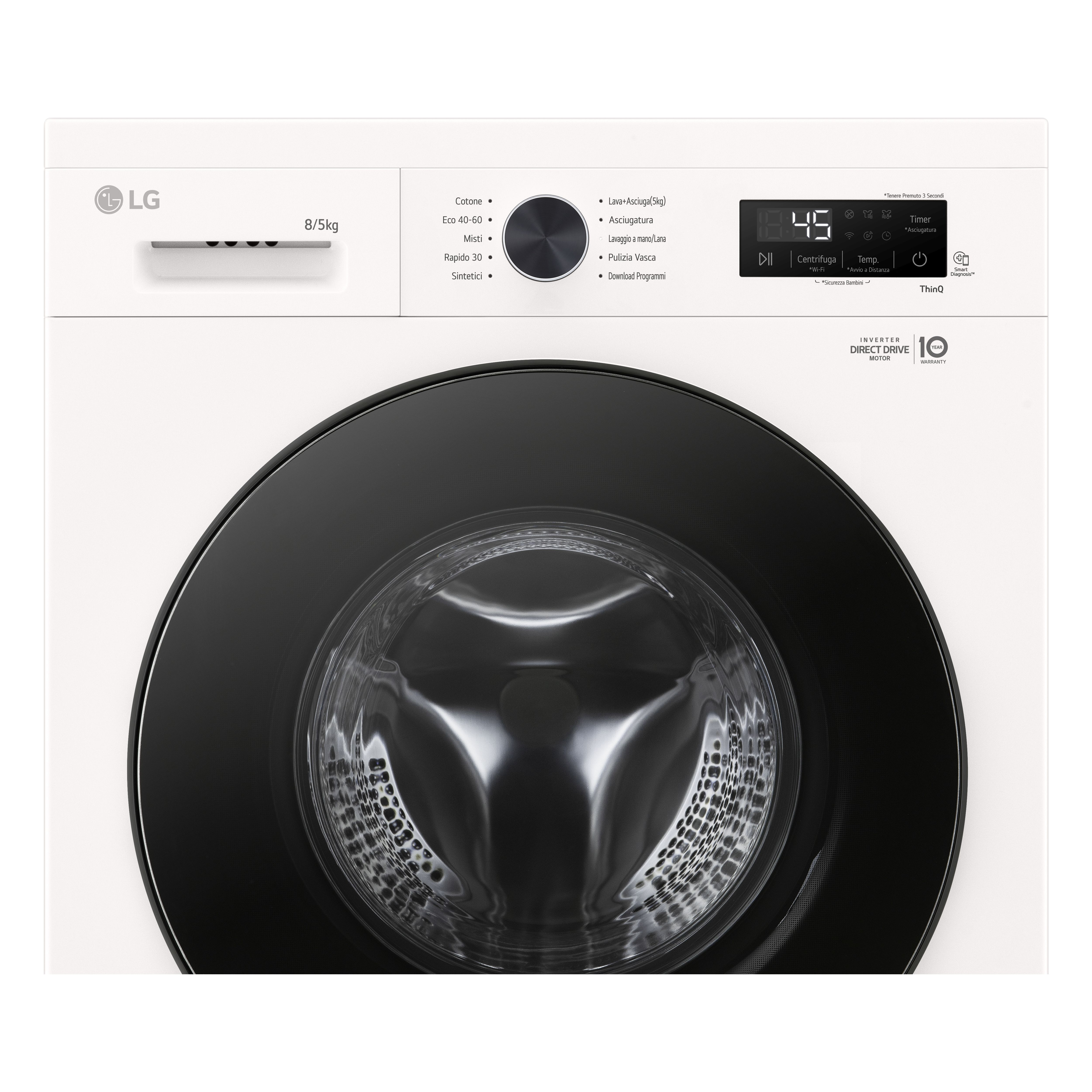 LG W4NX1085NWB Lavasciuga 8/5kg Serie X1, Classe A/E, 6 Motion Direct Drive, Wi-Fi, 1400 giri, Allergy Care, Bianca