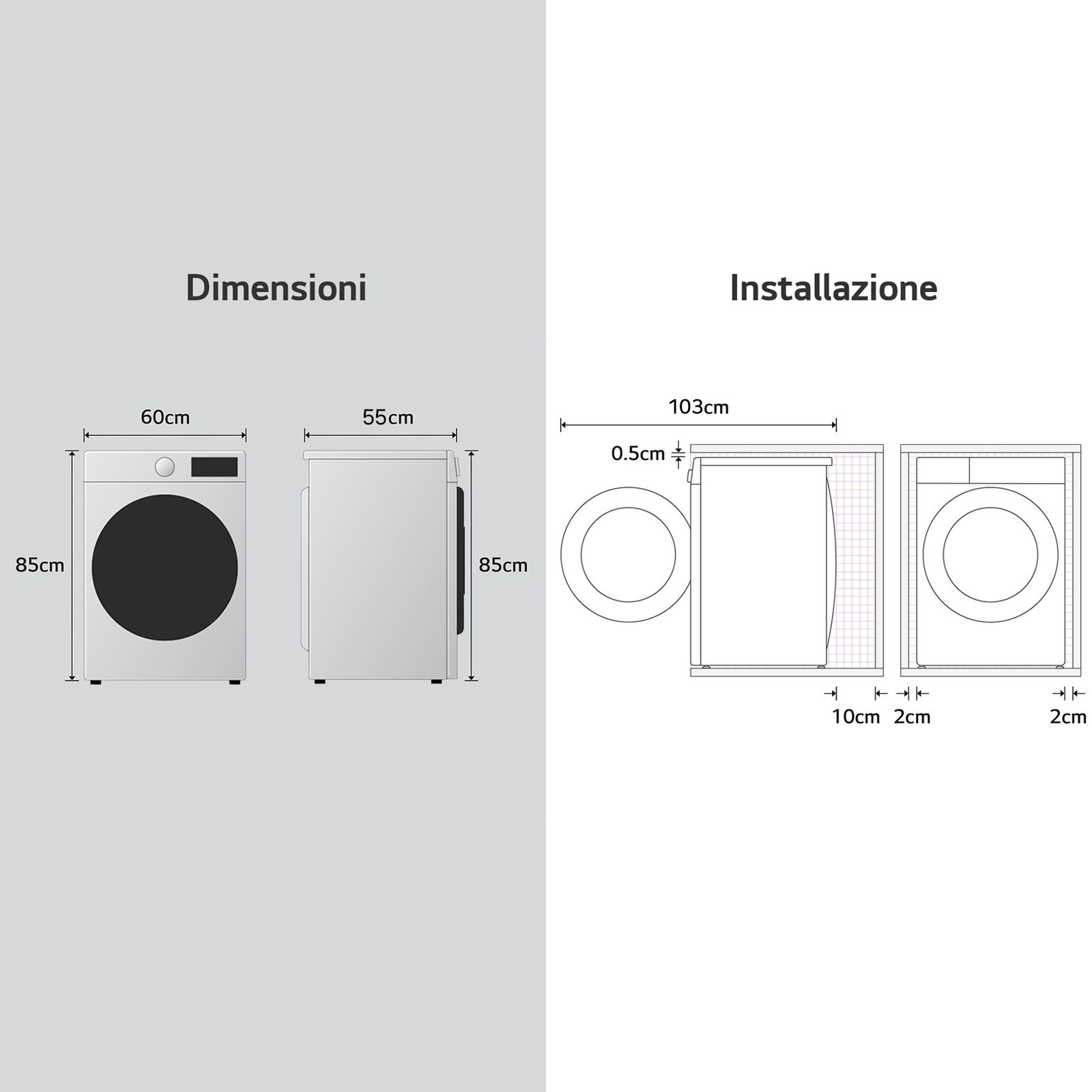 Tecnologie LG (cura dei vestiti)Allergy Care, DUAL Dry™, Inverter Direct Drive Motor, ThinQ™