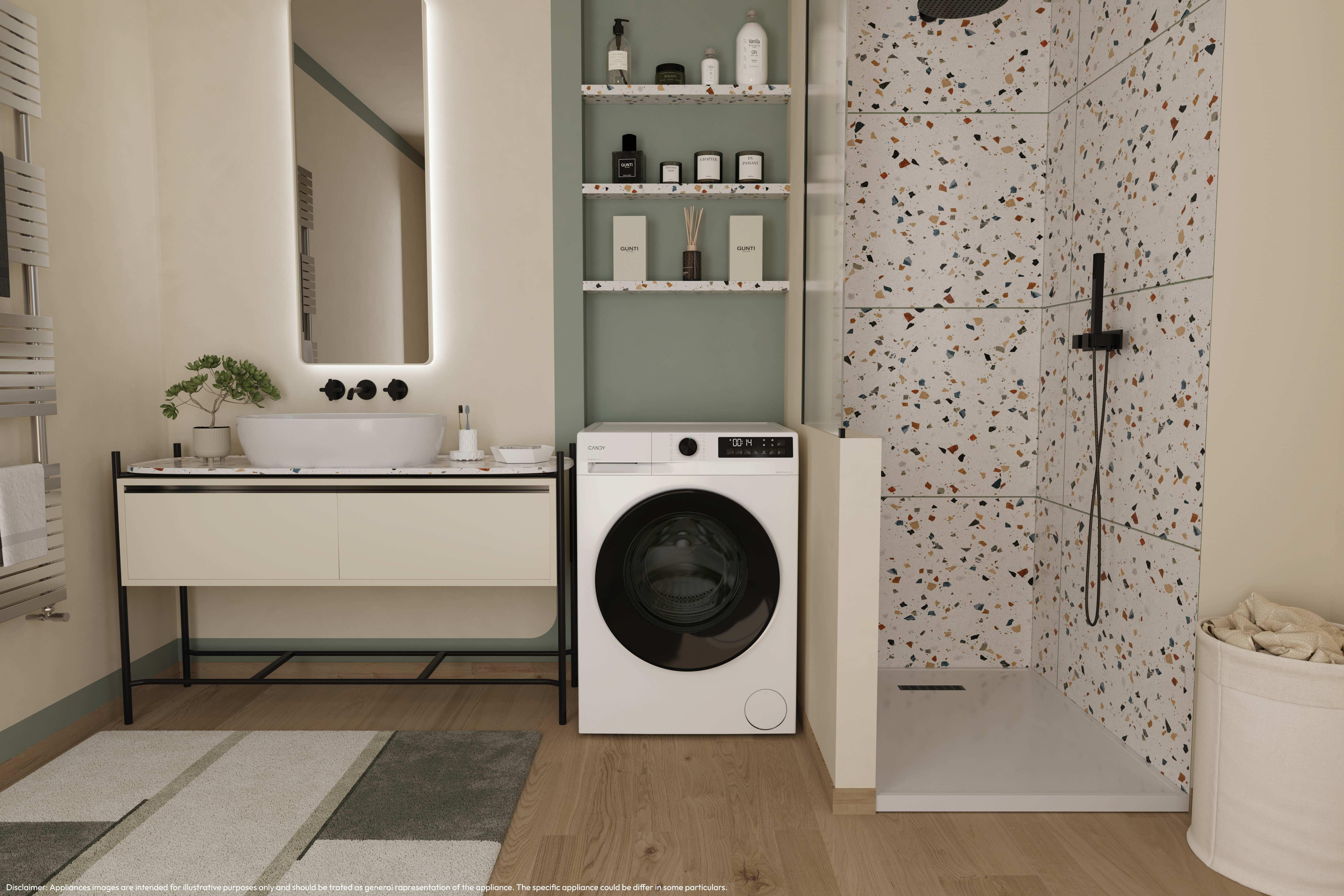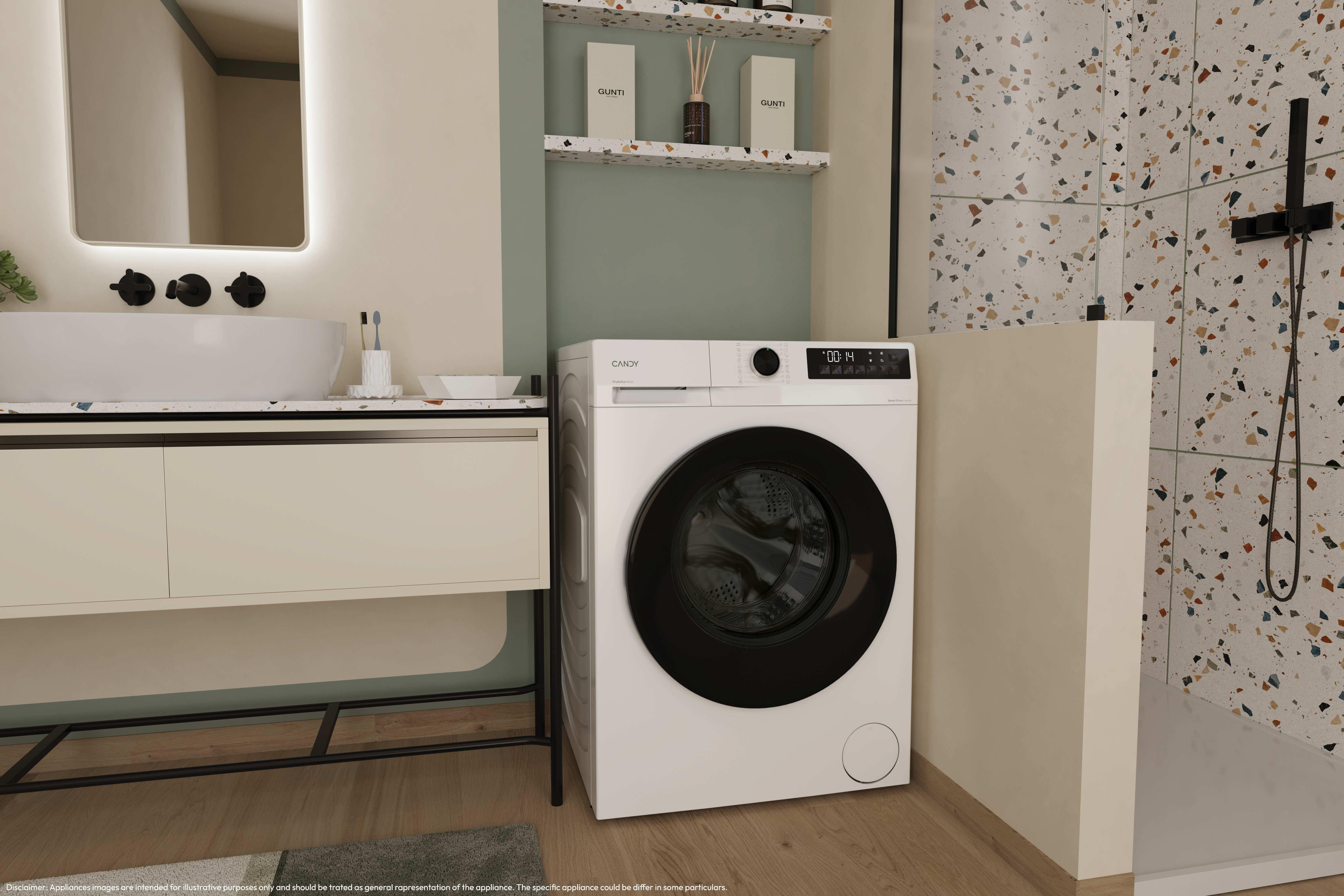 Candy ProWash 300, Lavasciuga Slim 8+5 KG, 10% più efficente della classe A, 1400 giri, Bianco, Inverter, Fresh Vapor, GWD 485SB6-S, Caricamento frontale, Libera installazione, Bianco, Sinistra, Nero, Pulsanti, Manopola