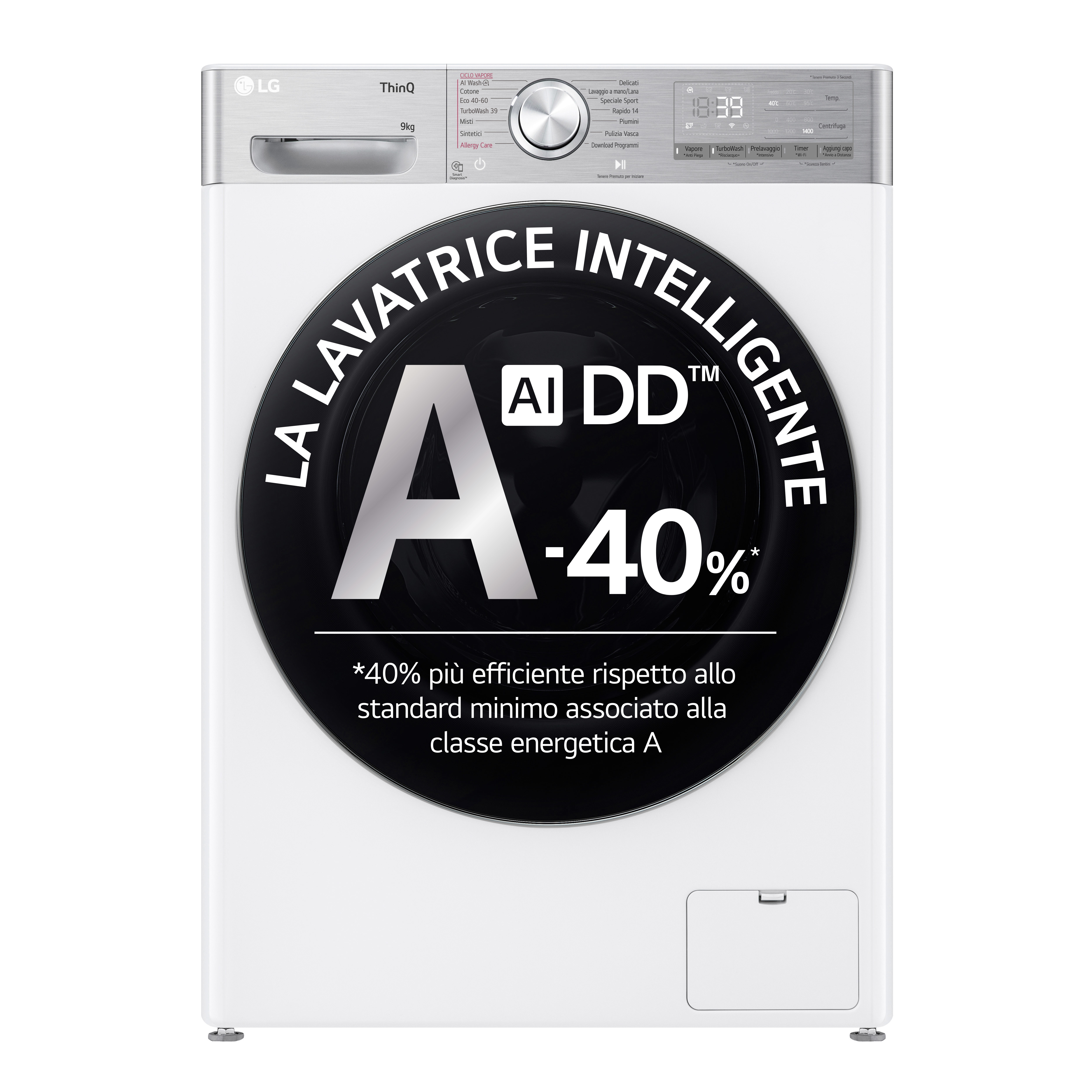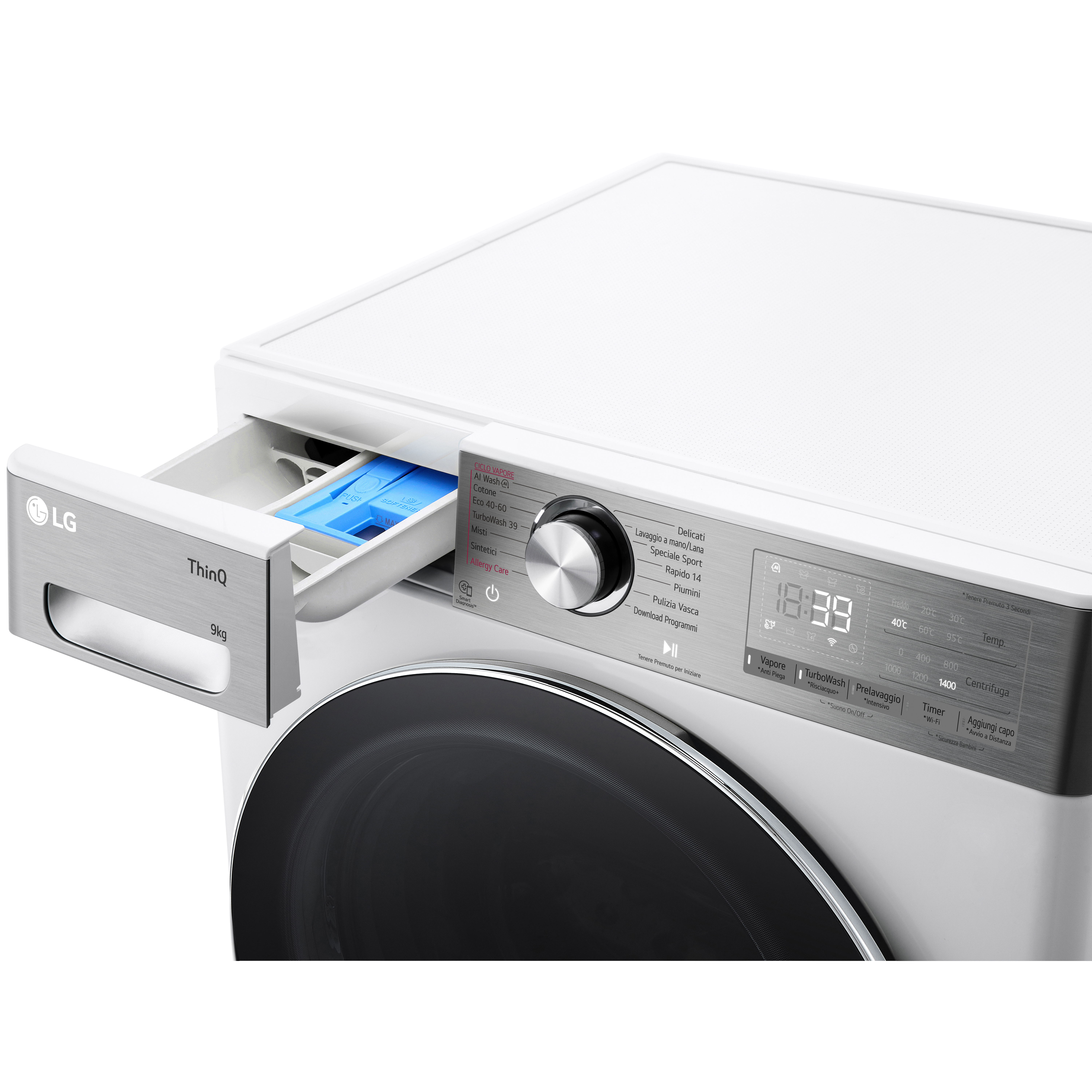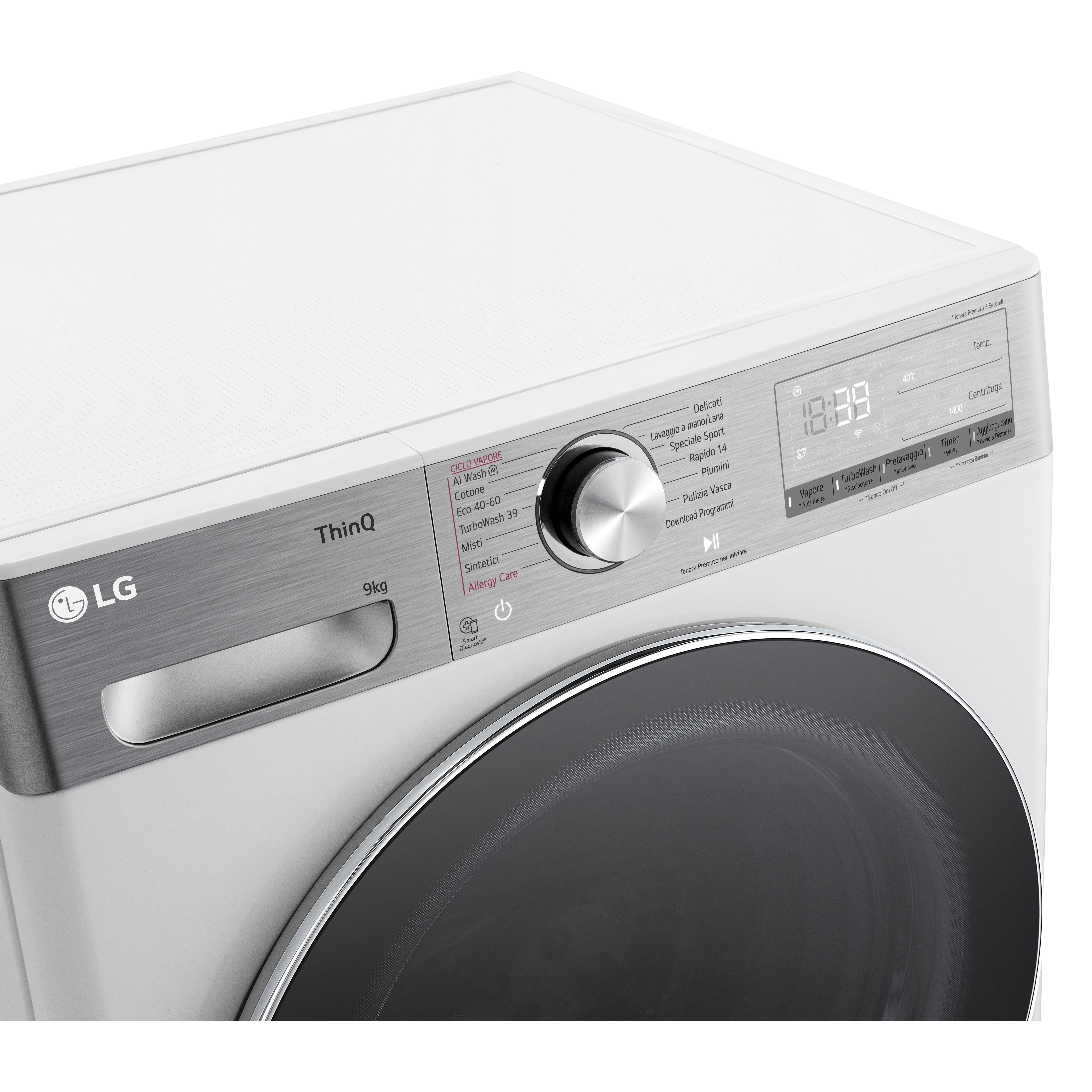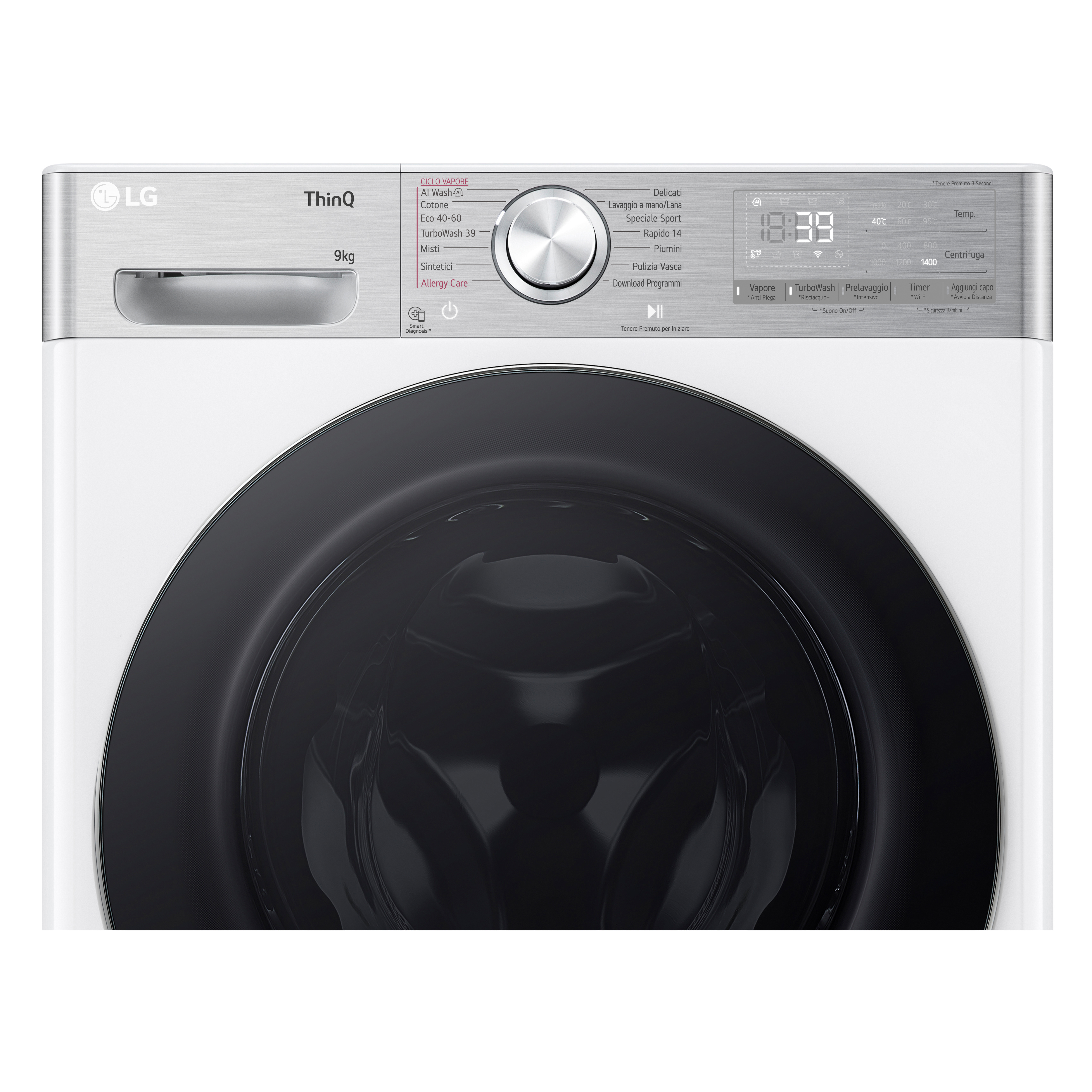 LG F4R9009TPWC Lavatrice 9kg AI DD, Classe A-40%, 1400 giri, TurboWash, Vapore