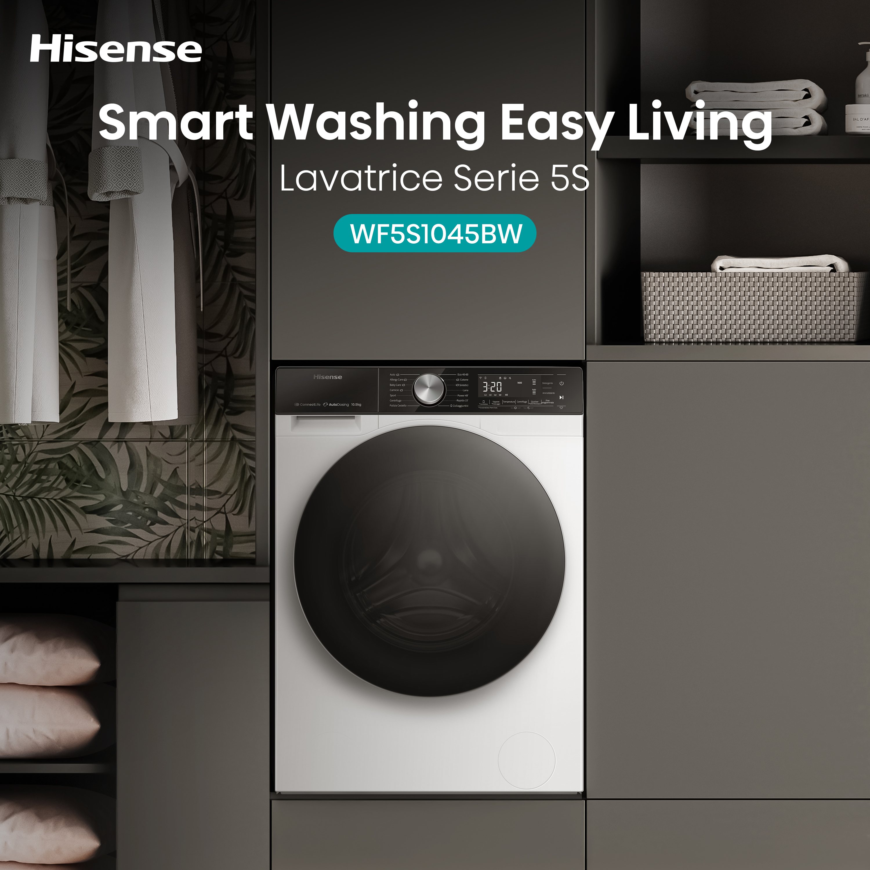 Hisense lavatrice WF5S1045BW 10,5 Kg Classe A Auto dosaggio Vapore WiFi