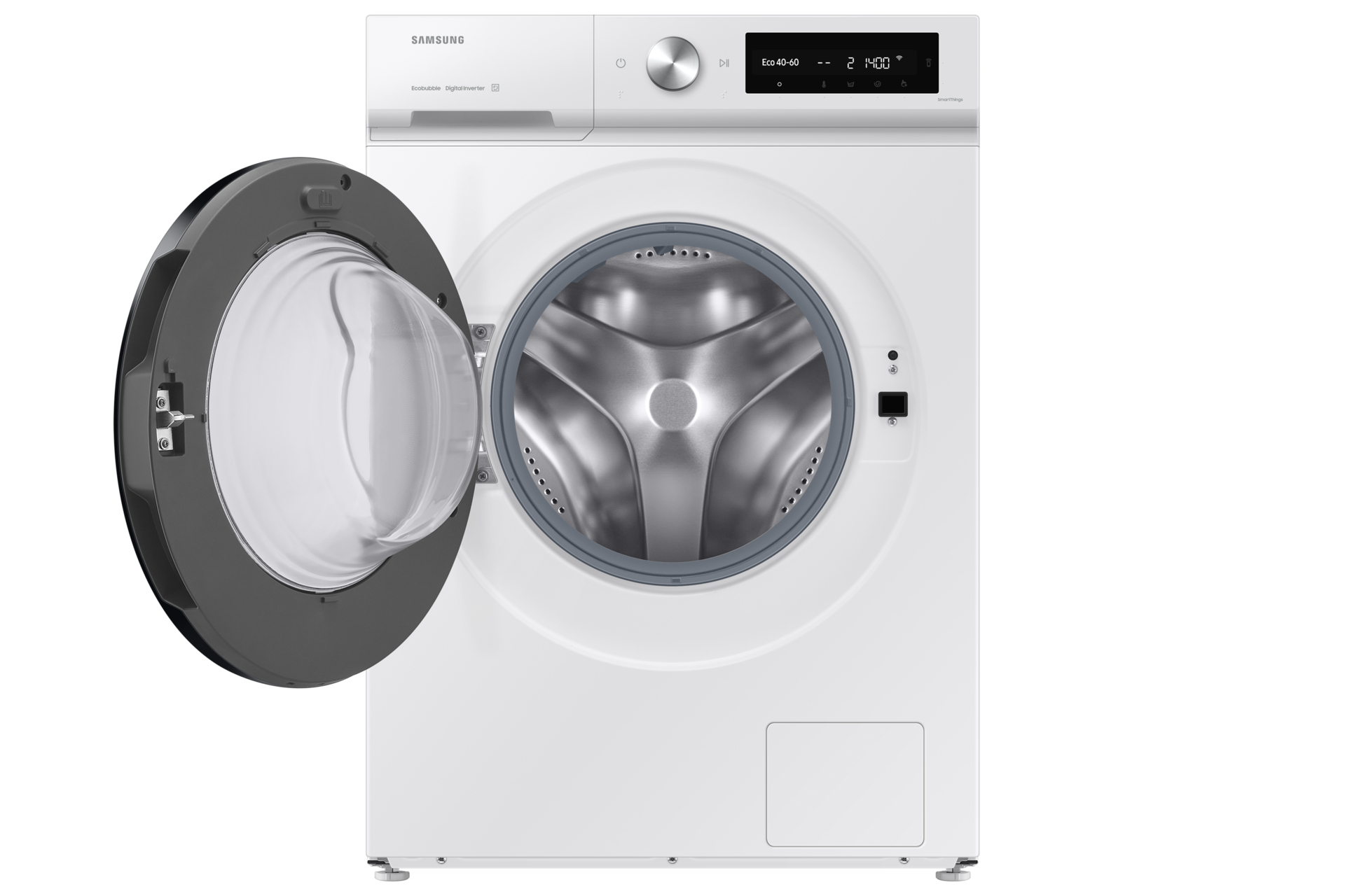 Samsung Lavatrice BESPOKE AI™ 9Kg WW90DB7U34GWU3. Tipo di carica: Caricamento frontale. Capacità cestello: 9 kg, Classe di efficienza della centrifuga: B, Silenziosità (centrifuga): 72 dB, Velocità di centrifuga massima: 1400 Giri/min. Colore del prodotto: Bianco. Larghezza: 600 mm, Profondità: 600 mm, Altezza: 850 mm. Classe efficienza energetica: A