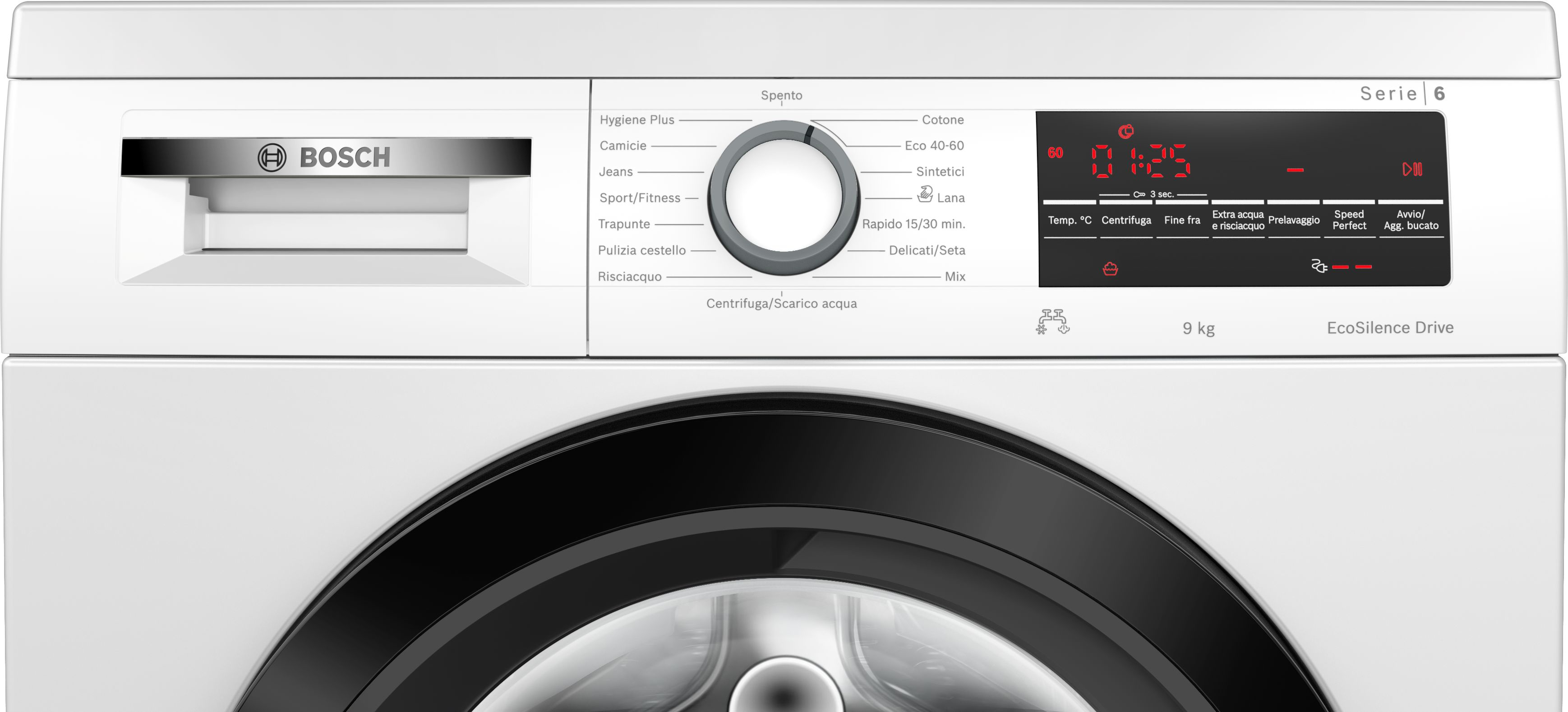 | Programmi di lavaggio | Biancheria da letto, Camicia/maglietta, Cotone, Piumino/piumone, Eco, A mano/Lana, Igiene/Allergy Care, Jeans/denim, Mix, Prelavaggio, Rapido, Risciacquo, Centrifuga/scarico, Sport, Lana |