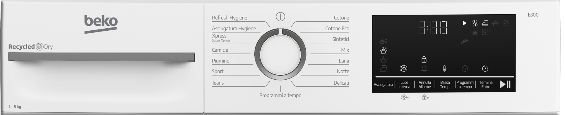 Beko BMT481WI_IT Asciugatrice 8kg, Classe C, Linea Estetica NX, motore inverter, Display Touch, Libera installazione, Caricamento frontale, Pompa di calore, Bianco, Manopola, Touch, Bianco