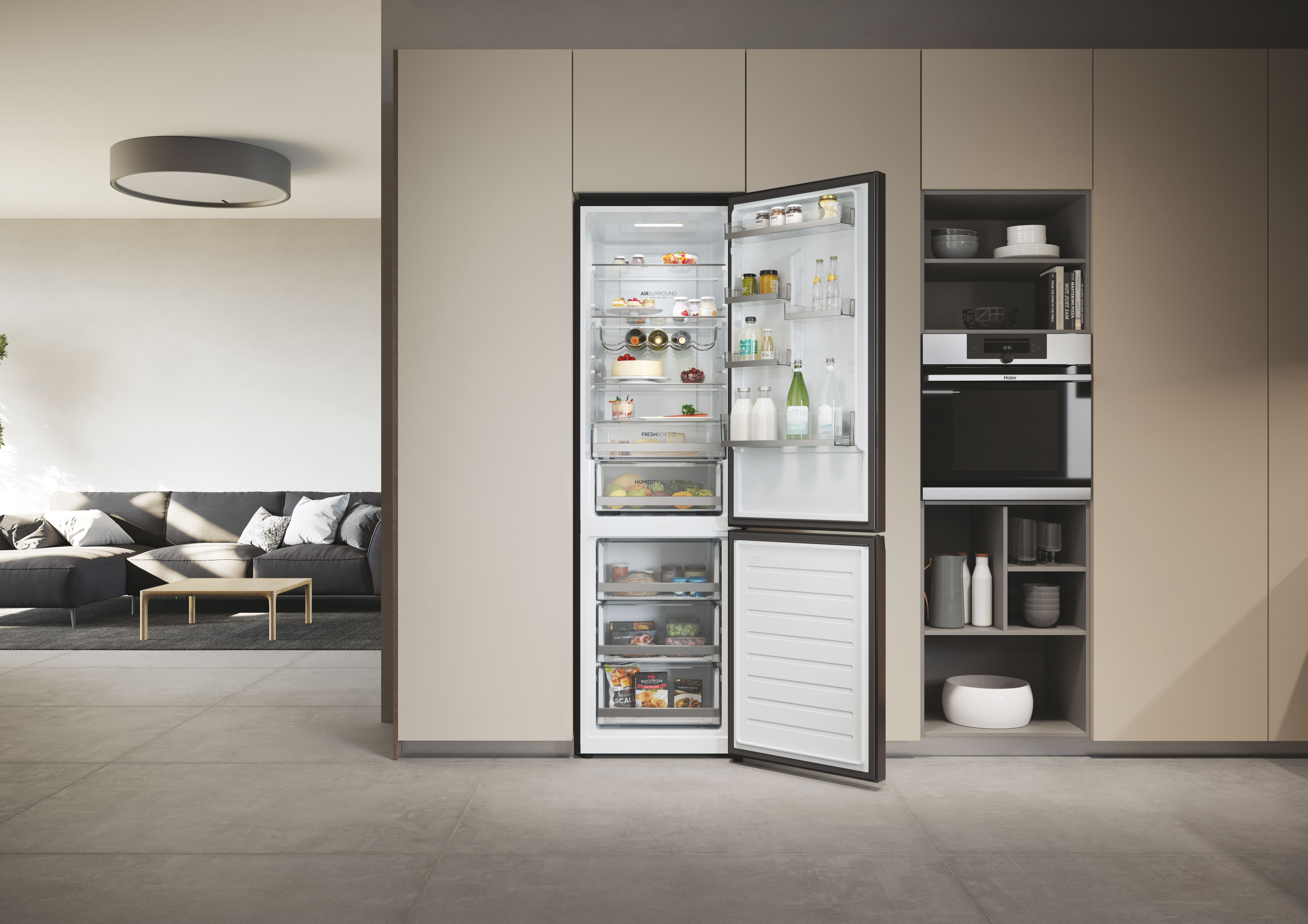 • Il frigorifero grazie all'app hOn, grazie alla funzione My Food Locator, ti consiglia dove posizionare ogni alimento evidenziando la zona più adatta direttamente sull'app hOn.
