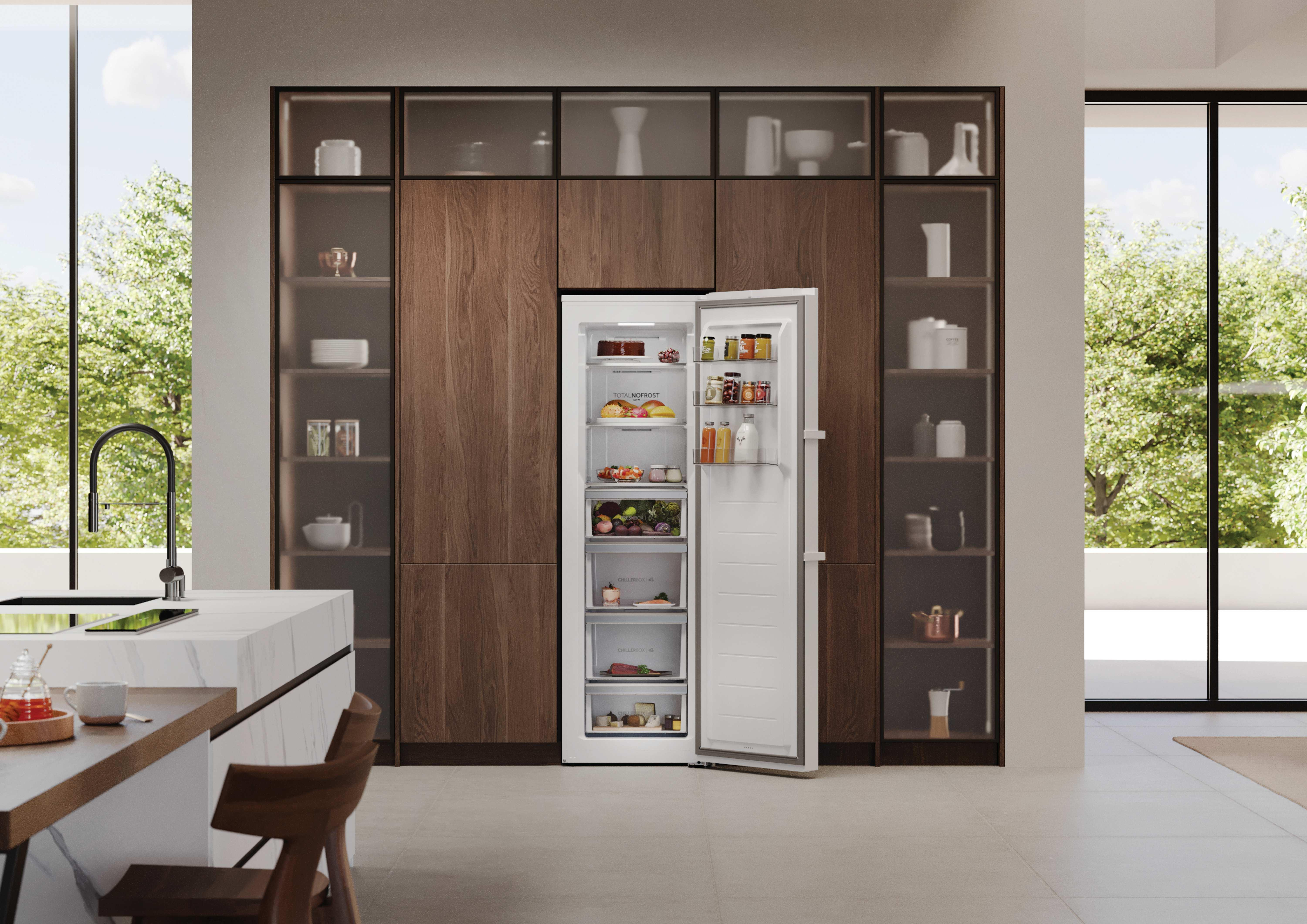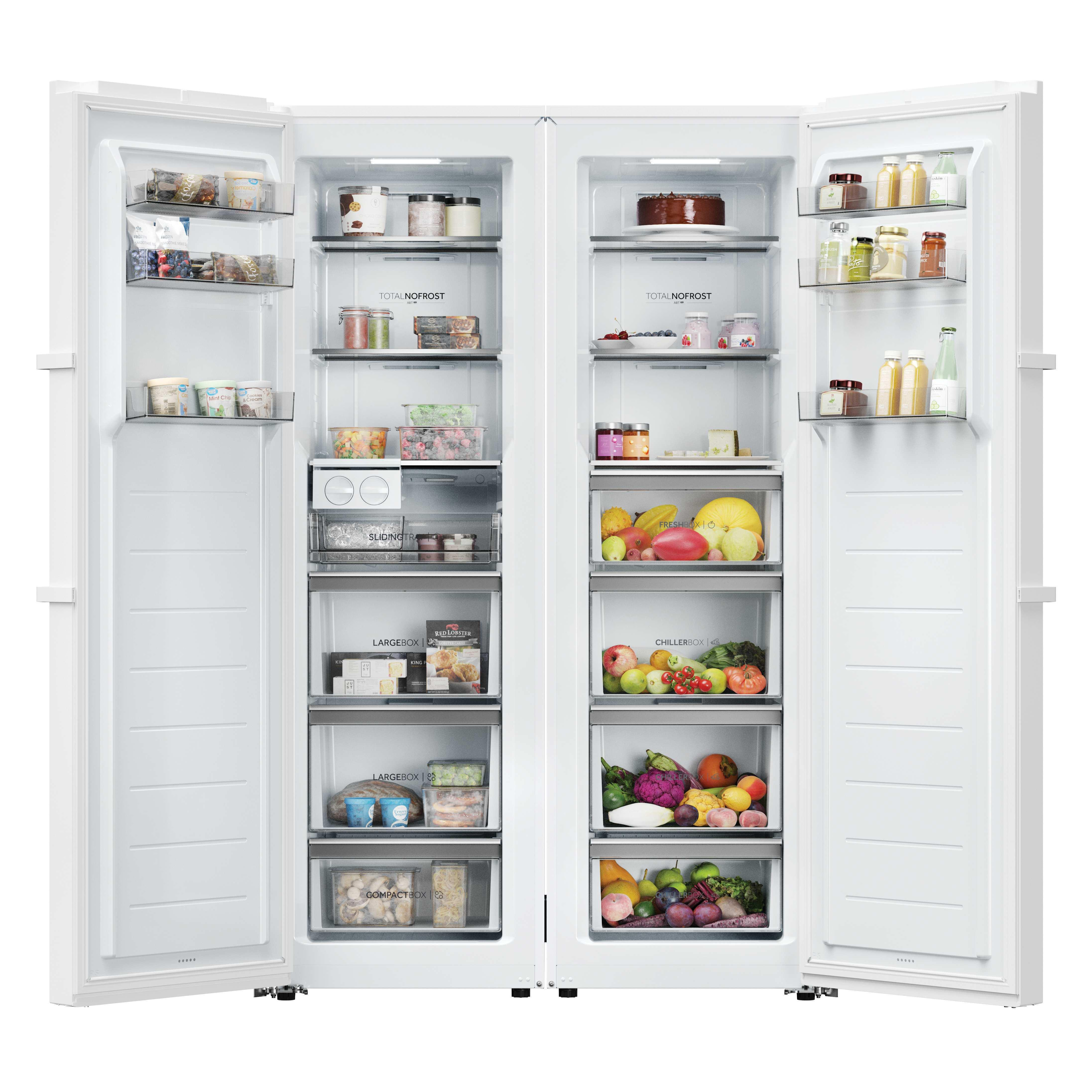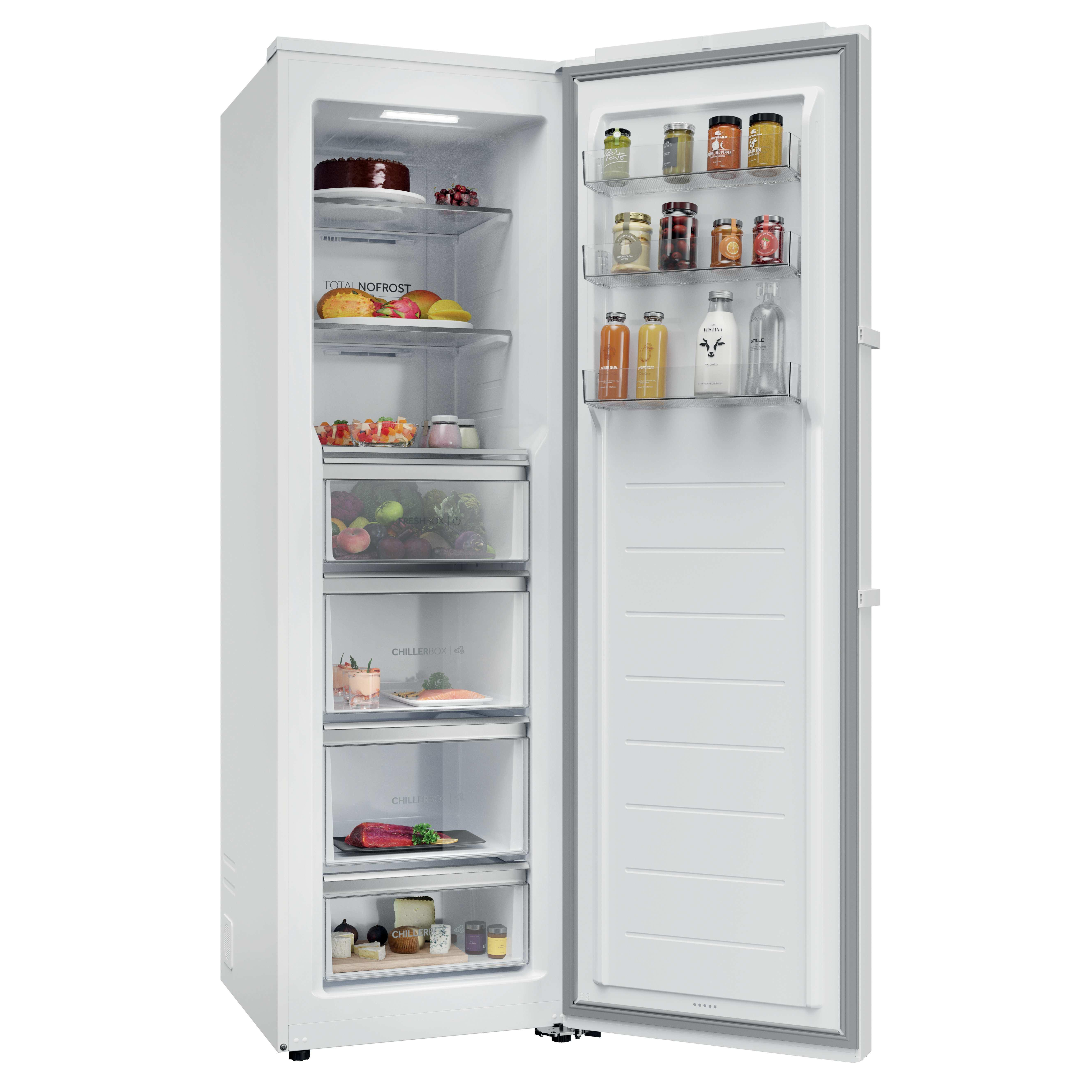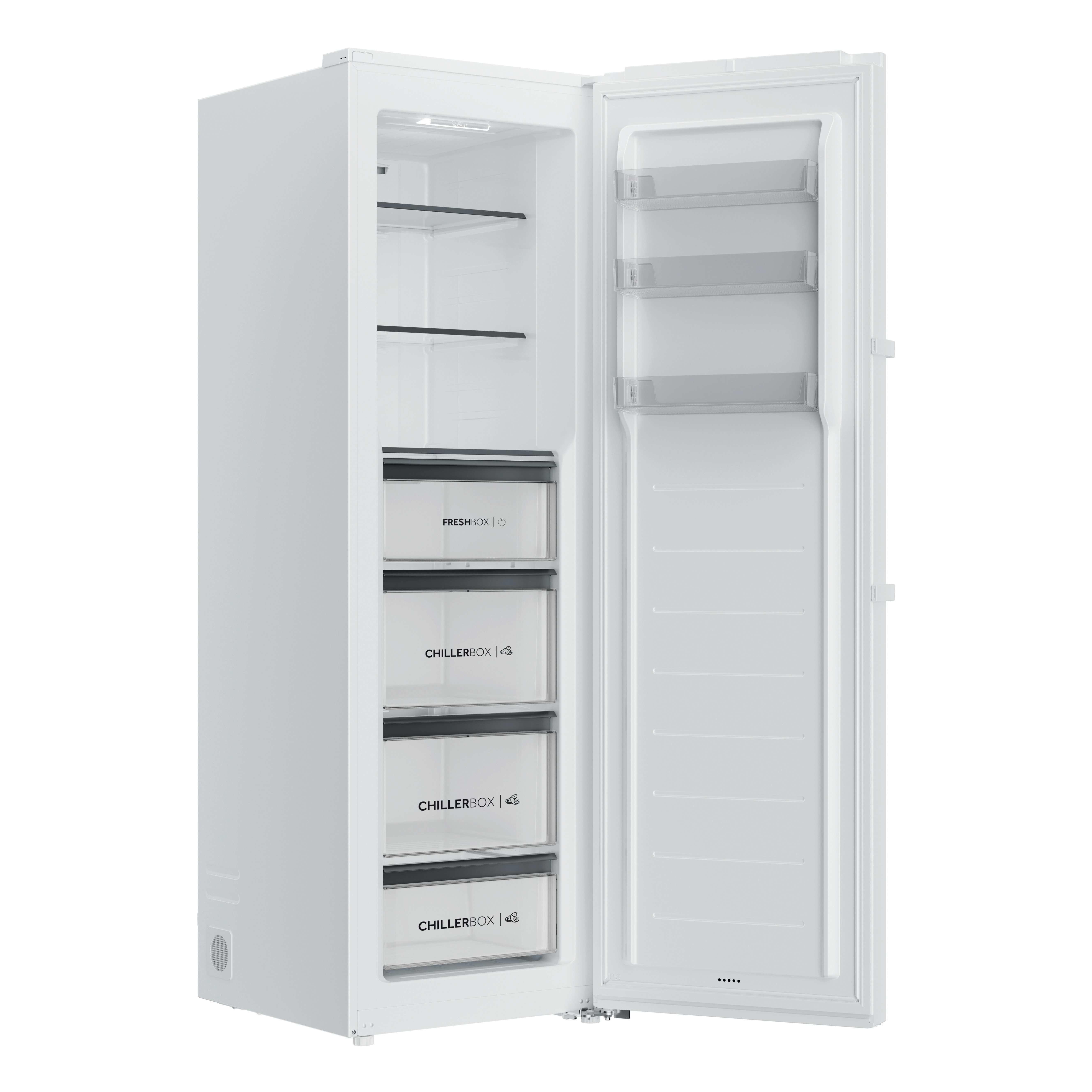 Haier H4R306WAH1. Classe climatica: SN-T, Emissione acustica: 36 dB. Capacità netta frigorifero: 301 L, Luce interna, Numero di ripiani frigorifero: 3, Numero di cassetti per verdura: 4. Classe efficienza energetica: A, Consumo energetico annuo: 56 kWh. Colore del prodotto: Bianco