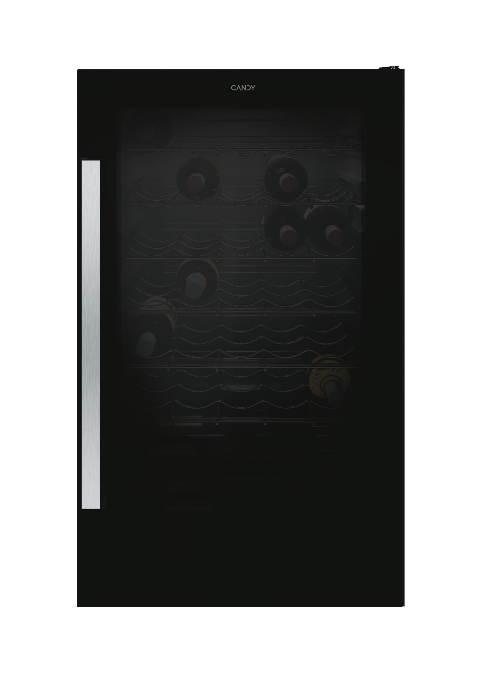 Candy DiVino CWC 150 ED/NF. Posizionamento dell'apparecchio: Libera installazione, Colore struttura: Nero, Colore interno: Nero. Capacità bottiglie: 41 bottiglia/bottiglie, Intervallo temperatura (zona 1): 7 - 18 °C, Classe climatica: N-ST. Tipo di controllo: Manopola, Tipo di lampada: LED. Classe efficienza energetica: G, Consumo energetico annuo: 143 kWh, Scala di efficienza energetica: Da A a G. Larghezza: 490 mm, Profondità: 545 mm, Altezza: 845 mm