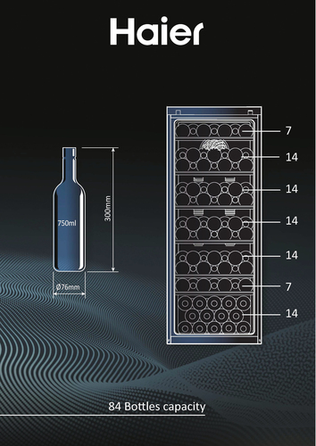 Haier Wine Bank 50 Serie 5 HWS84GA, Cantinetta vino con compressore, Libera installazione, 84 bottiglia/bottiglie, G, Nero, Nero