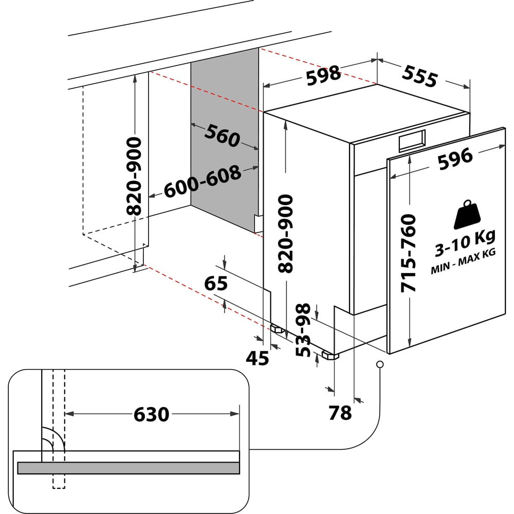 Whirlpool Lavastoviglie Maxispace BI 60 cm, classe A, 15 coperti, terzo cesto flessibile. Posizionamento dell'apparecchio: A scomparsa totale, Dimensione: Dimensione massima (60 cm), Colore pannello di controllo: Nero. Numero di coperti: 15 coperti, Classe emissione rumore: A, Emissione acustica: 38 dB. Classe efficienza energetica: A, Consumo di acqua per ciclo: 9,9 L, Consumo energetico per 100 cicli: 55 kWh. Larghezza: 598 mm, Profondità: 555 mm, Altezza: 820 mm. Larghezza imballo: 625 mm, Profondità imballo: 675 mm, Altezza imballo: 910 mm