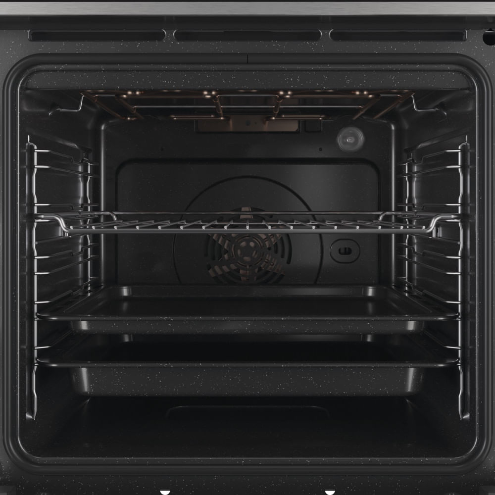 Questo forno è dotato di un'ampia cavità da 73 lt, con griglie posizionabili su 5 differenti livelli. Una nuova gestione del forno che permette di sperimentare grande creatività in cucina.