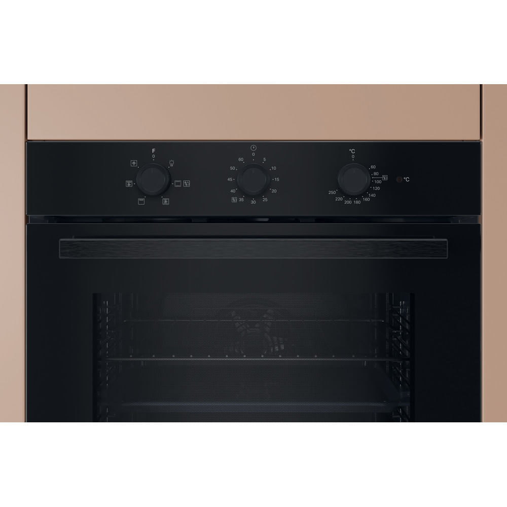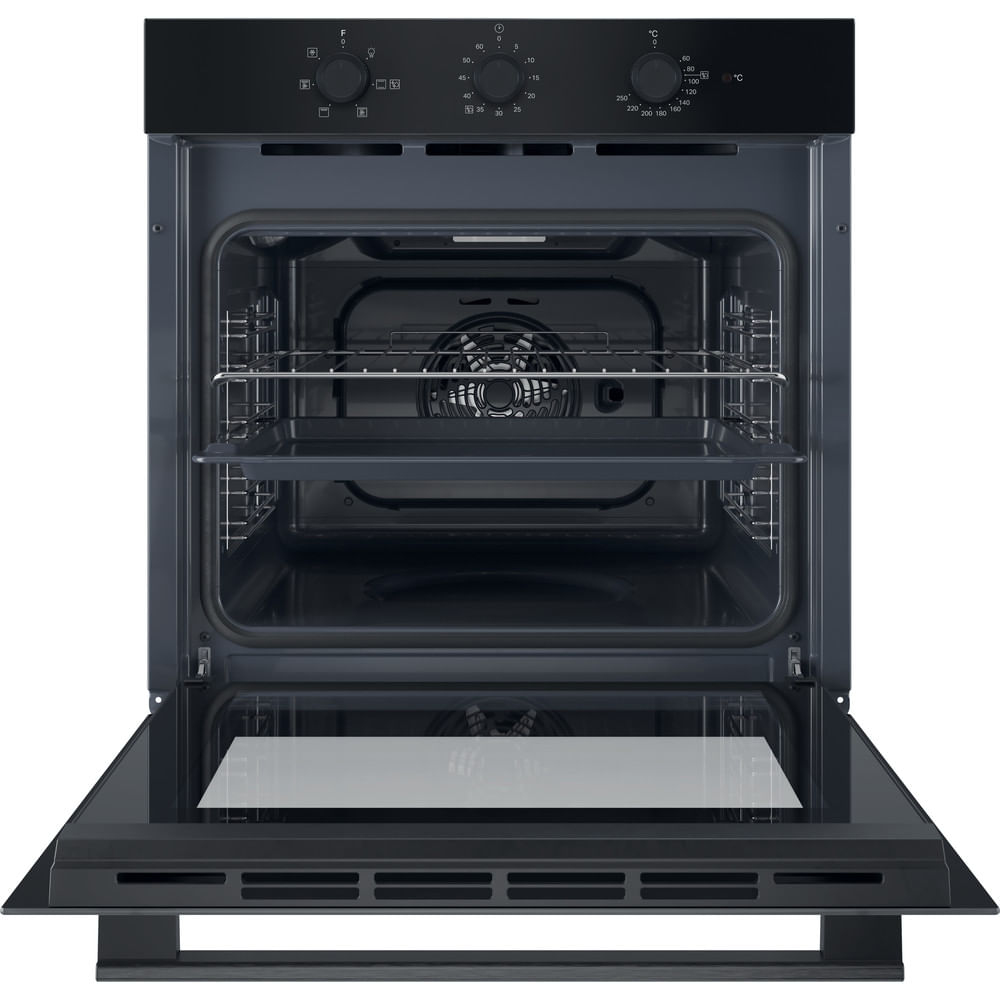 Hotpoint Ariston Forno da incasso HAO 435H B. Dimensione del forno: Media, Tipo di forno: Forno elettrico, Capacità interna forno totale: 71 L. Posizionamento dell'apparecchio: Da incasso, Colore del prodotto: Nero, Tipo di controllo: Manopola, Touch. Tipo di timer: Digitale. Classe efficienza energetica: A, Consumo energetico (convenzionale): 0,99 kWh, Consumo energetico (convezione forzata): 0,81 kWh. Quantità lampade: 1 lampada(e), posizione delle illuminazioni: Anteriore sinistra