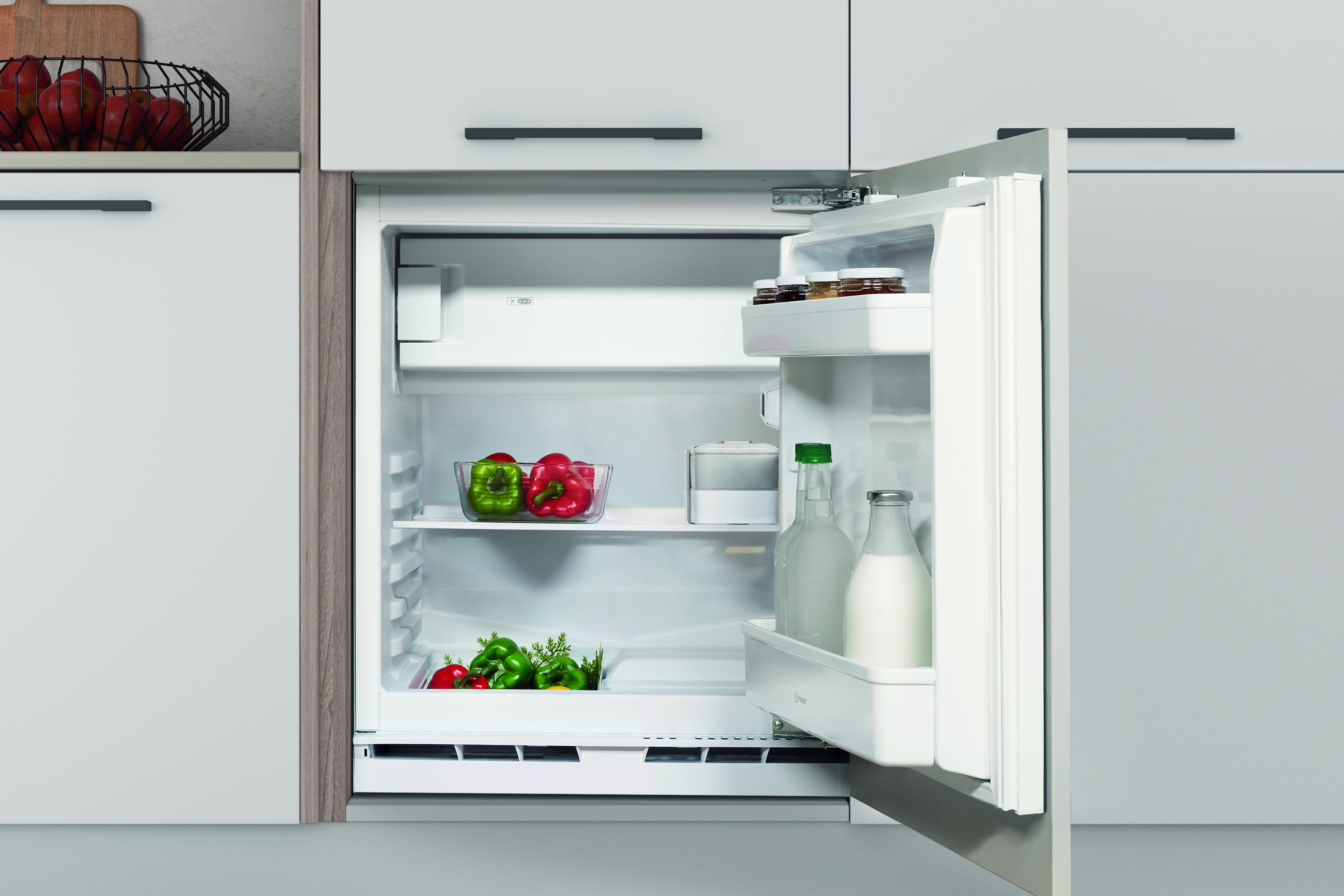 Indesit INBUF031. Posizionamento dell'apparecchio: Da incasso, Colore del prodotto: Grigio, Cerniera porta: Destra. Capacità netta totale: 126 L, Classe climatica: N-T, Classe emissione rumore: C. Capacità netta frigorifero: 108 L, Tipo di lampada: LED. Posizione del congelatore: Posto in alto, Capacità netta congelatore: 18 L, Capacità di congelamento: 3 kg/24h. Lunghezza cavo: 2,45 m