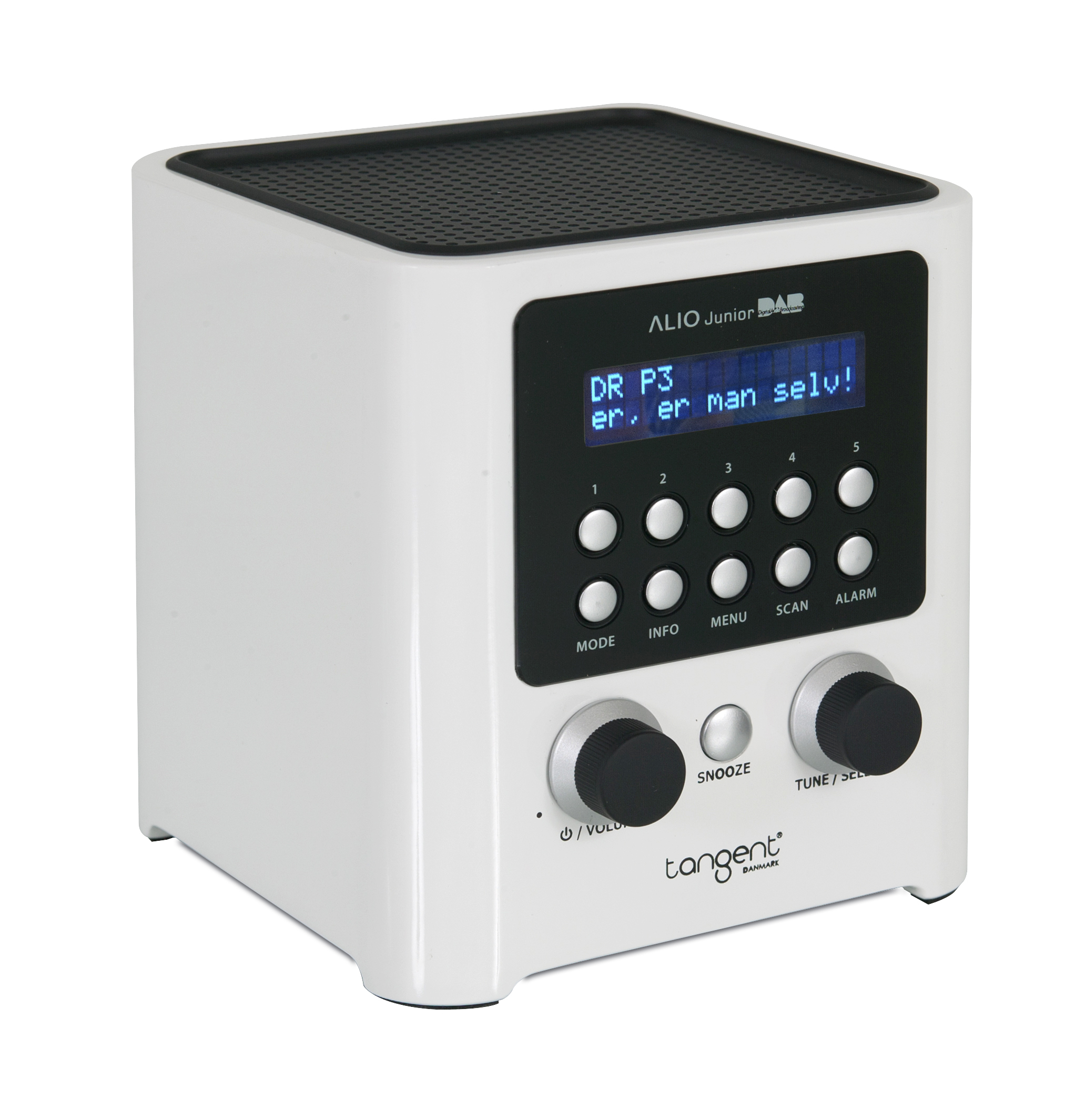 Tangent Alio Junior DAB. Tipo radio: Personale, Tipo sintonizzatore: Analogico e digitale, Bande del sintonizzatore: DAB,FM,DAB+. Colore del prodotto: Bianco, Portata termica nominale: 200 W. Larghezza: 130 mm, Profondità: 130 mm, Altezza: 140 mm. Tipologia alimentazione: AC. Dimensioni imballo (LxPxA): 150 x 150 x 180 mm, Peso incluso imballo: 1,2 kg
