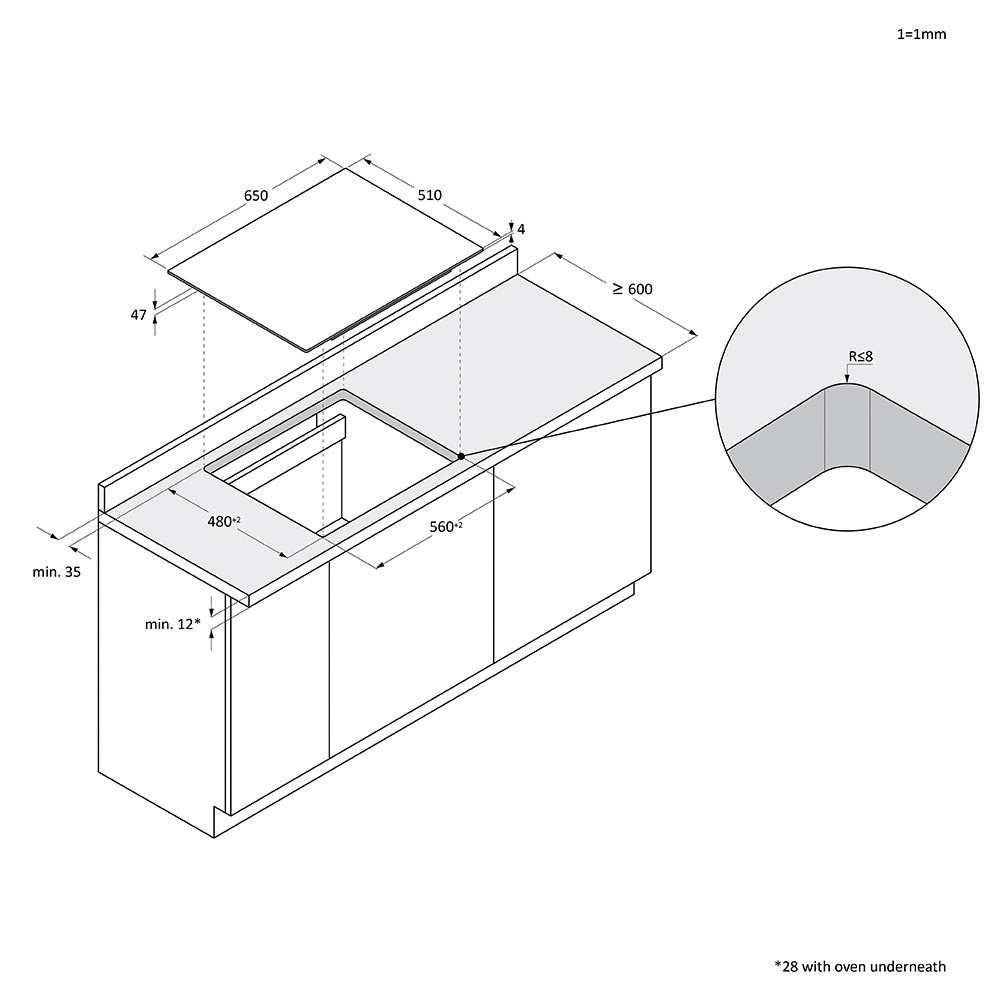 | Dimensione della larghezza del piano cottura | 65 cm |