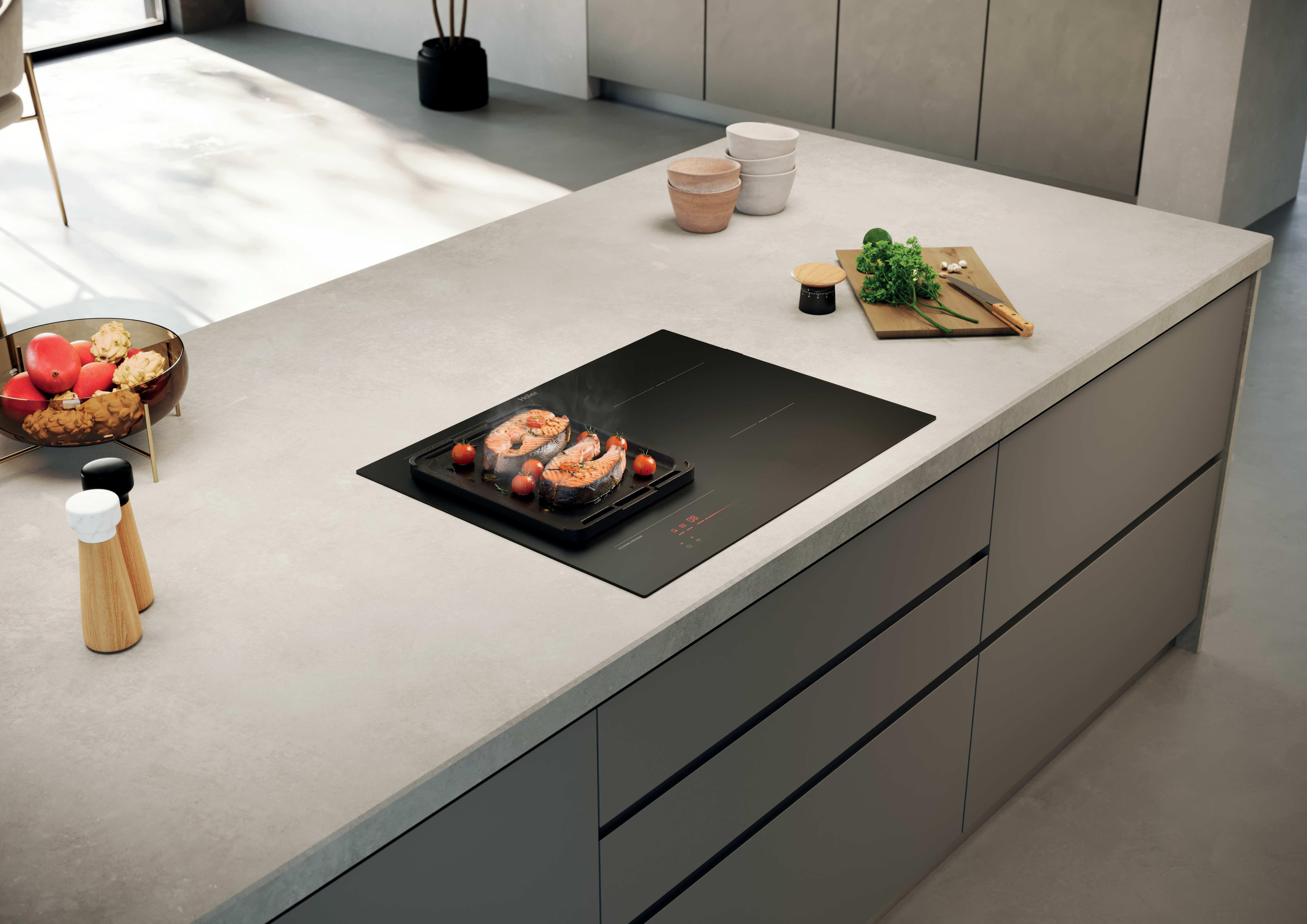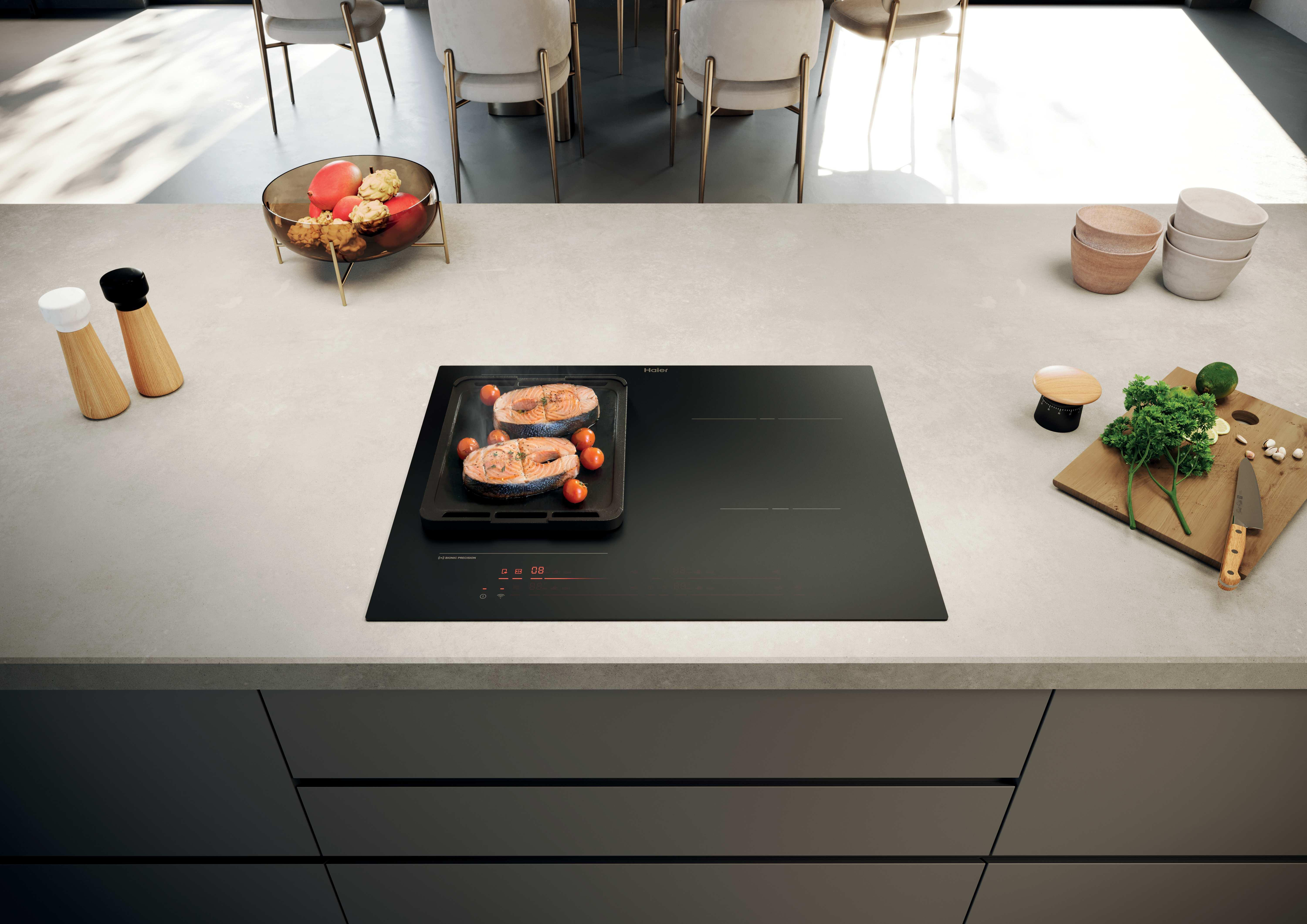 Haier HAMTCB56IRCS. Colore del prodotto: Nero, Posizionamento dell'apparecchio: Da incasso, Dimensione della larghezza del piano cottura: 65 cm. Tipo di controllo: Touch, Posizione di controllo: Front / Top front, Tipo di timer: Digitale. Tensione di ingresso AC: 220-240 V, Consumi (modalità stand-by): 0,5 W. Applicazioni per il controllo supportate: hOn. Larghezza: 650 mm, Profondità: 510 mm, Altezza: 51 mm