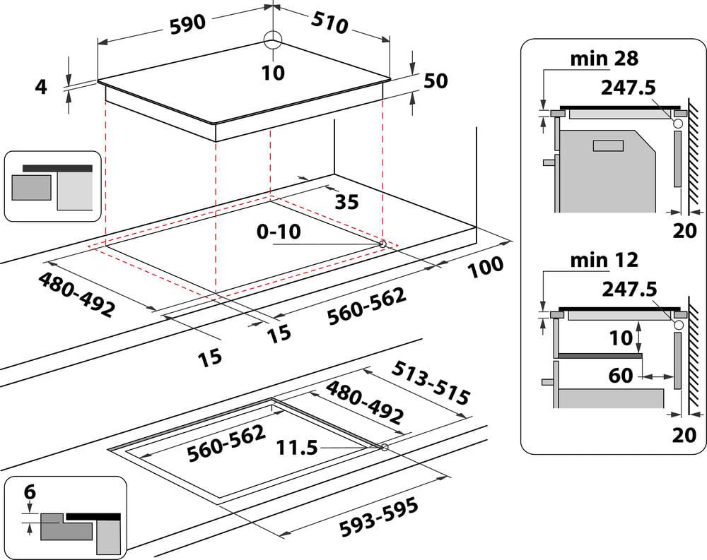 | Dimensione della larghezza del piano cottura | 59 cm |