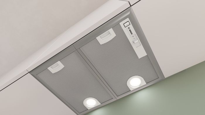 Bosch Serie 4 DHL555BM. Potenza massima di estrazione: 604 m³/h, Tipo di estrazione: Aspirante/Filtrante, Classe di efficienza dinamica del fluido: D. Tipo: Integrato, Colore del prodotto: Metallico, Argento, Tipo di controllo: Tiro a effetto. Tipo di filtro antigrasso: Alluminio, Numero di filtri: 2 pz. Potenza lampadina: 2,15 W, Numero di lampadine: 2 lampadina(e), Tipo di Lampadina: LED. Classe efficienza energetica: D, Consumo energetico annuo: 89 kWh, Scala di efficienza energetica: Da A+++ a D